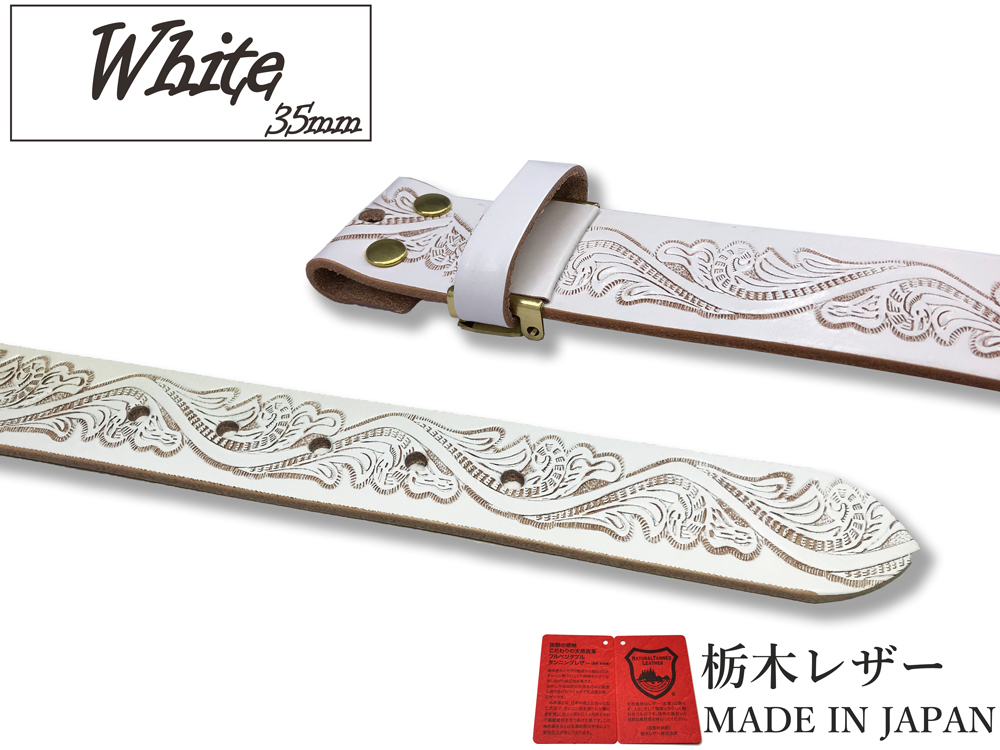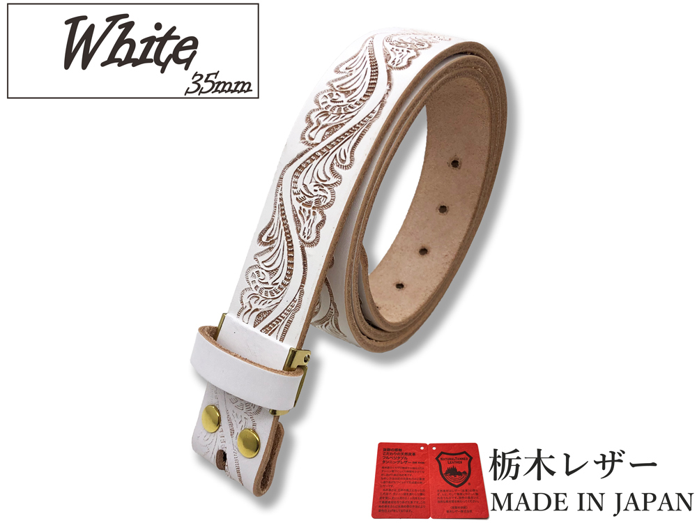 新品 栃木レザー カジュアルベルト Mサイズ メンズ クラフト 帯のみ 本革 交換用 取り換え 牛革 35mm 白 ホワイト 金ホック W050WHG