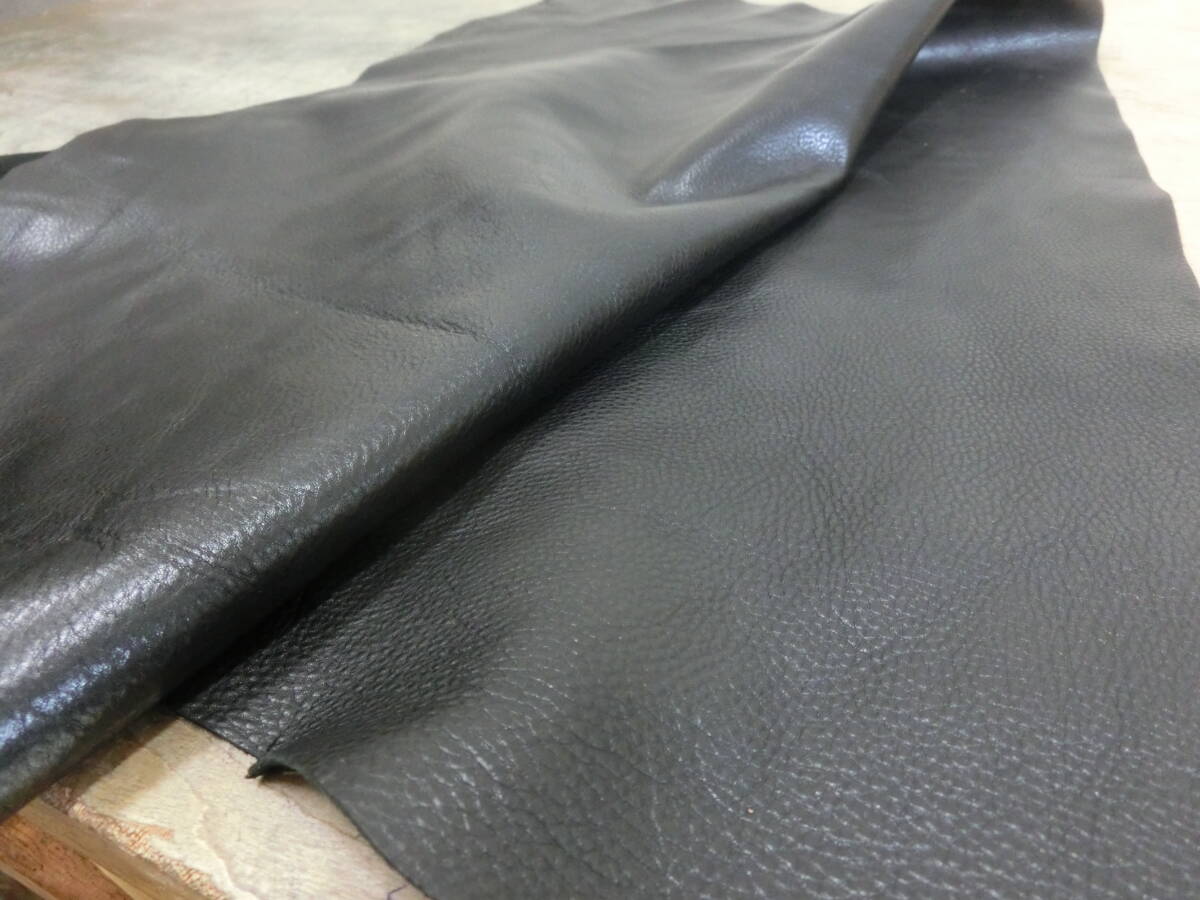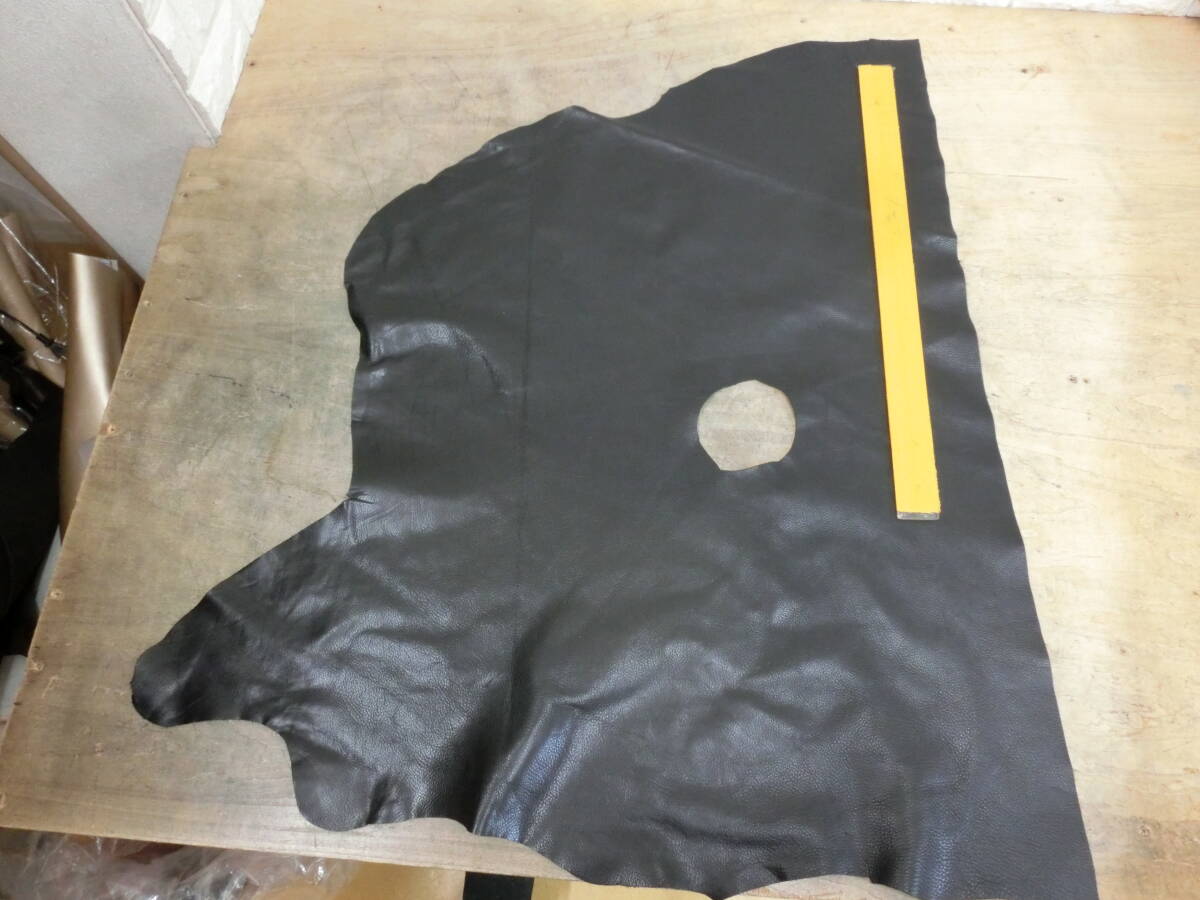 E60 黒艶無し コンビ鞣しタンニン含む 味わい地シボ オイル含む 柔らかソフト 1,2ミリ前後 最長部約84×75㎝ レザークラフト材料