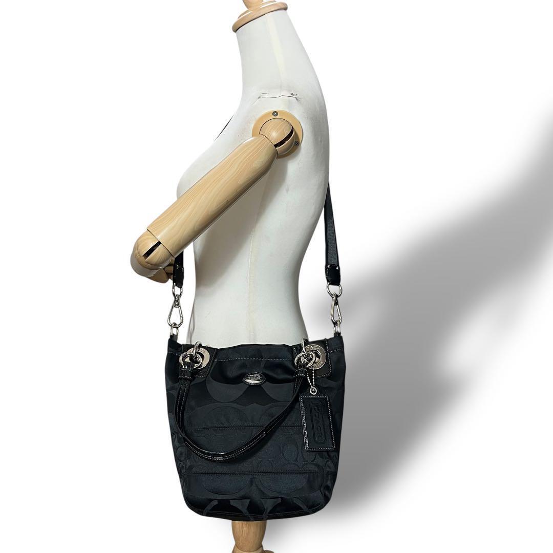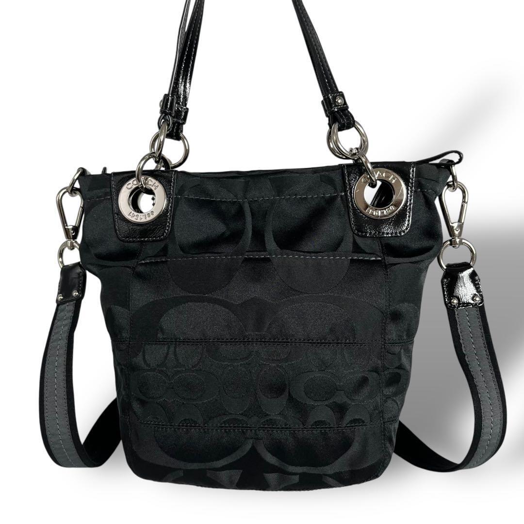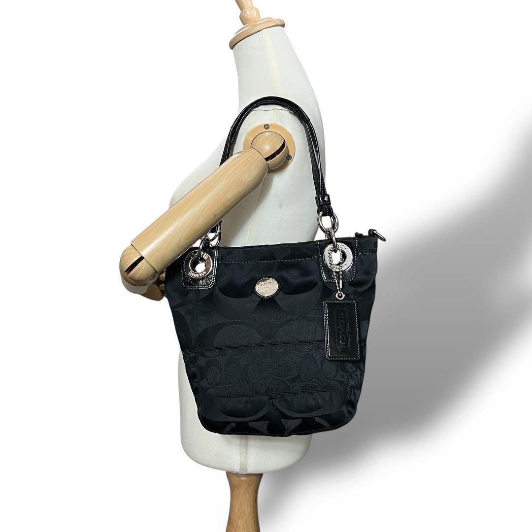 COACH コーチの2wayトートバッグ ハンドバッグ ショルダーストラップを使用してショルダーバッグとしてもご使用いただけます。合わせやすいブラック 黒、金具はシルバーです。