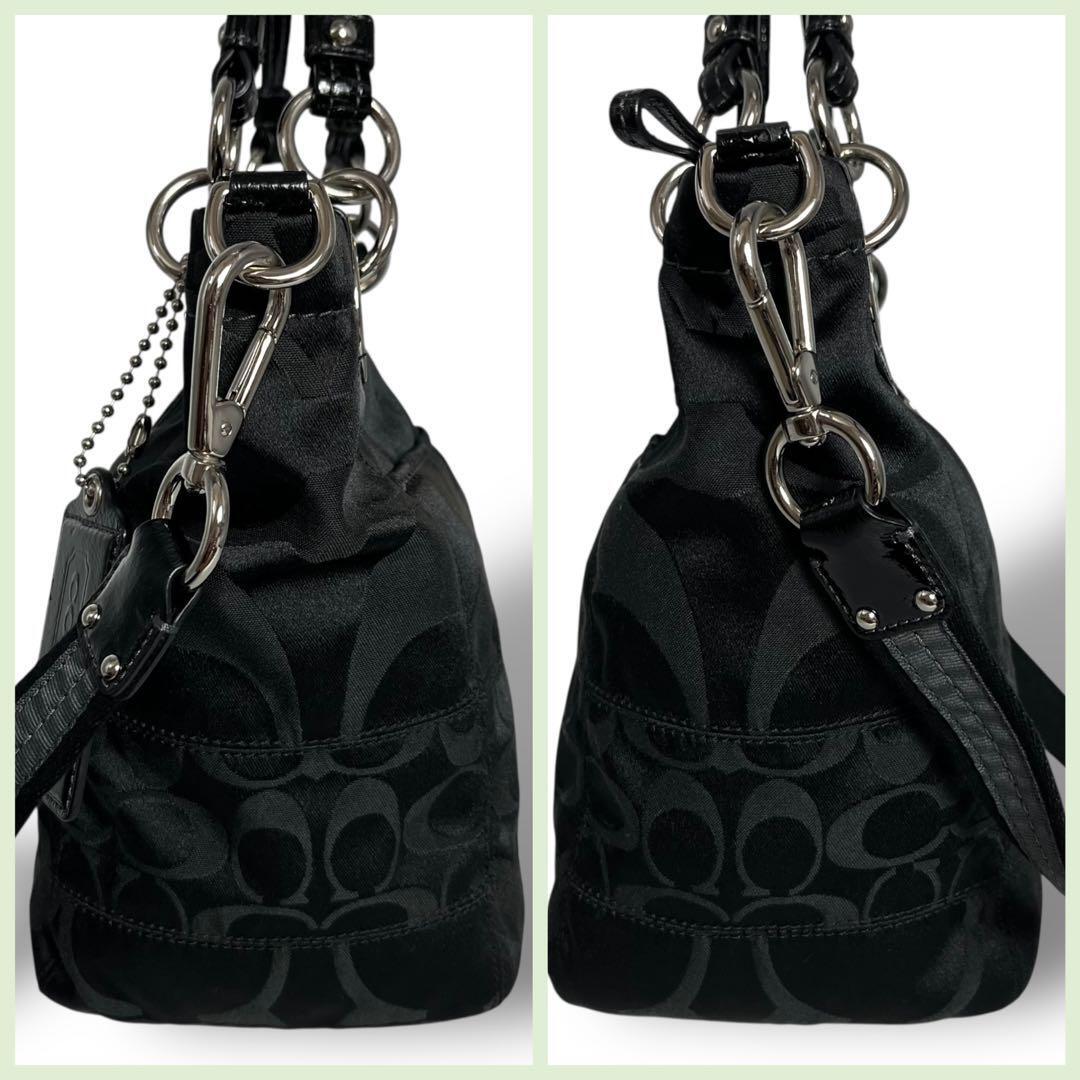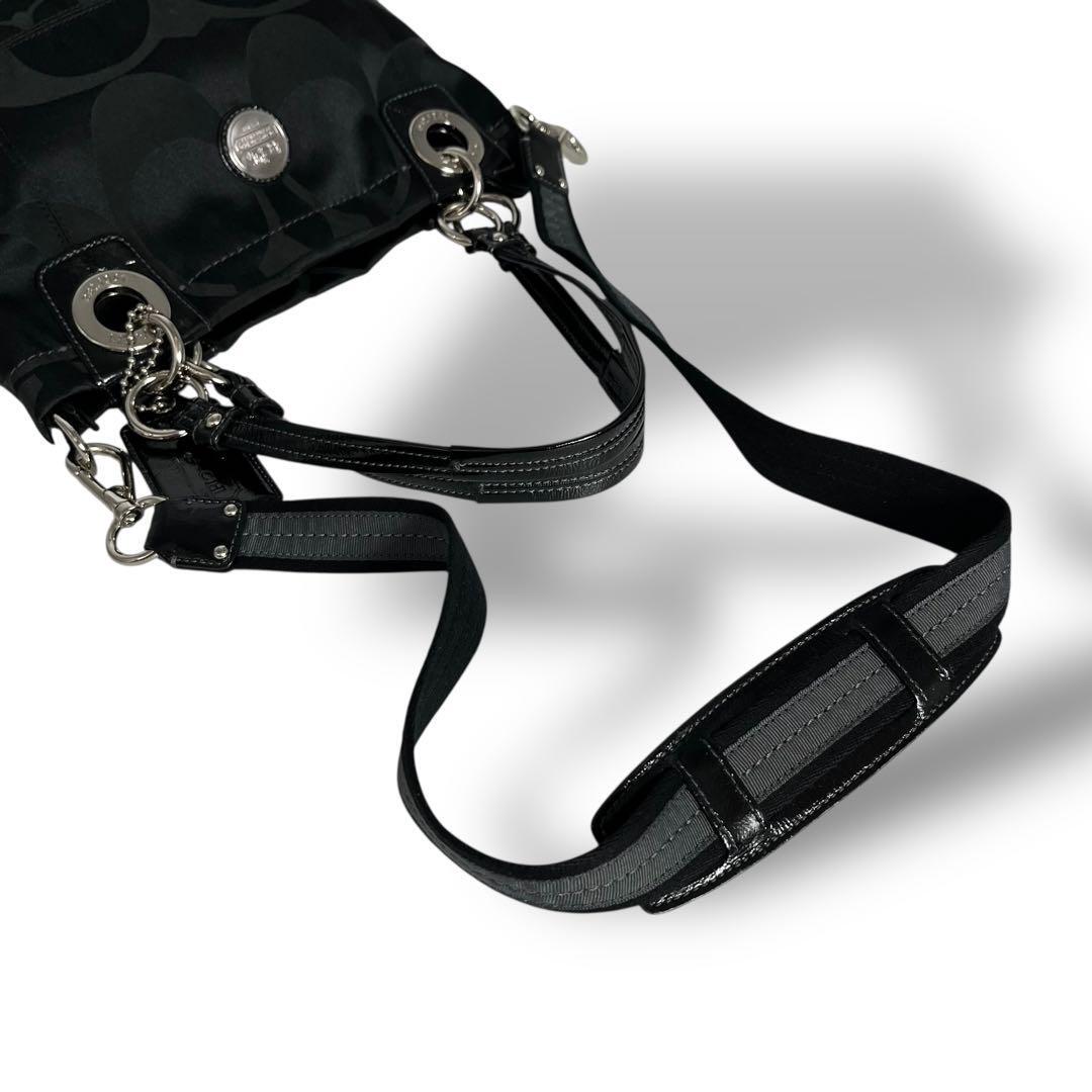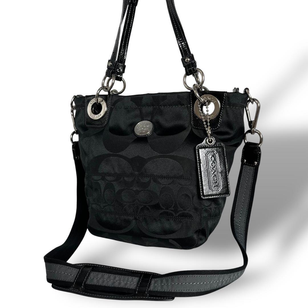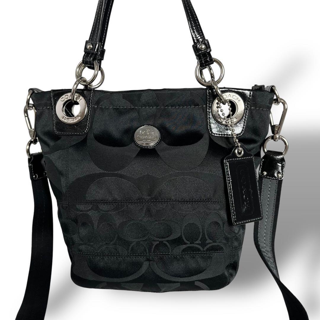 COACH コーチの2wayトートバッグ ハンドバッグ ショルダーストラップを使用してショルダーバッグとしてもご使用いただけます。合わせやすいブラック 黒、金具はシルバーです。