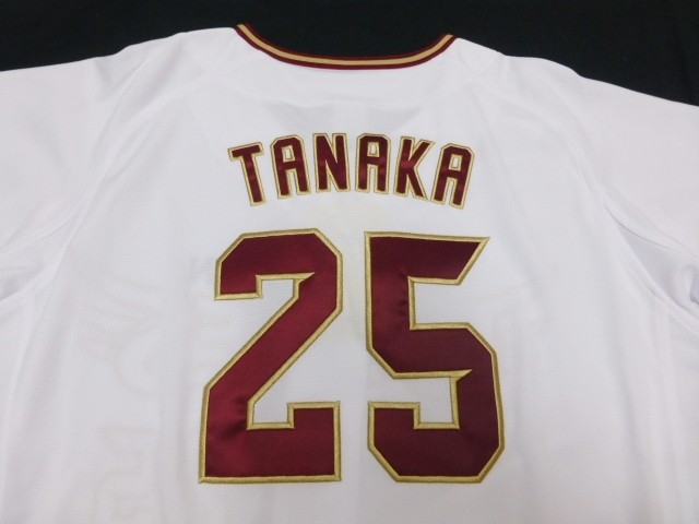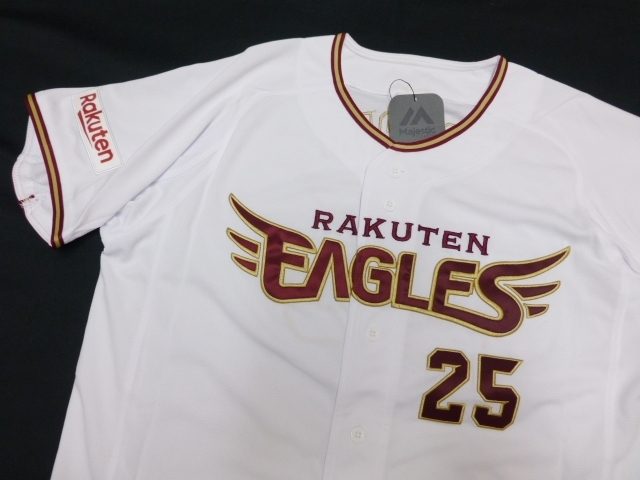マジェスティック製 楽天イーグルス 2019 ホーム レプリカ ユニフォーム #25 田中 和基 上質なパッチ刺繍を採用した しっかりとしたつくりです。 ◇ファナティクス・ジャパン合同会社 正規品 ◇中国製 ◇状態:未使用 下げ札あり 外装なし ◇定価:税込9,000円 ◇素材:ポリエステル100% ★サイズ表記 メンズサイズ L タグ表記 胸囲 96-104cm 身長 175-185cm 実寸は以下になります 身幅 60cm 着丈 77cm(背面) 裄丈 44cm ※多少の誤差はご了承ください ●モニター環境により実際のお色と異なる場合がございます ●採寸方法は全アイテム「平置き」です。 採寸方法により、若干の誤差(伸縮による1~2センチの誤差)は あると思われますがご了承下さい。 | |||