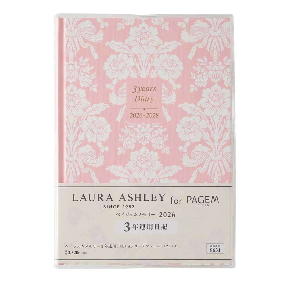 @【即決】▽2026年 ダイアリー▽ ノルティ ペイジェムメモリー 3年連用日記 A5 ローラアシュレイ 1月始まり 花柄 ピンク // 8631 タットン