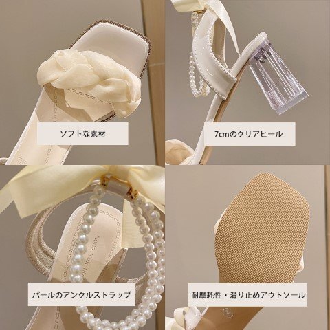 レディース ミュール クリアヒール オープントゥ 厚底 美脚 脚長 パール スタイルアップ 23.5cm(37) オフホワイト