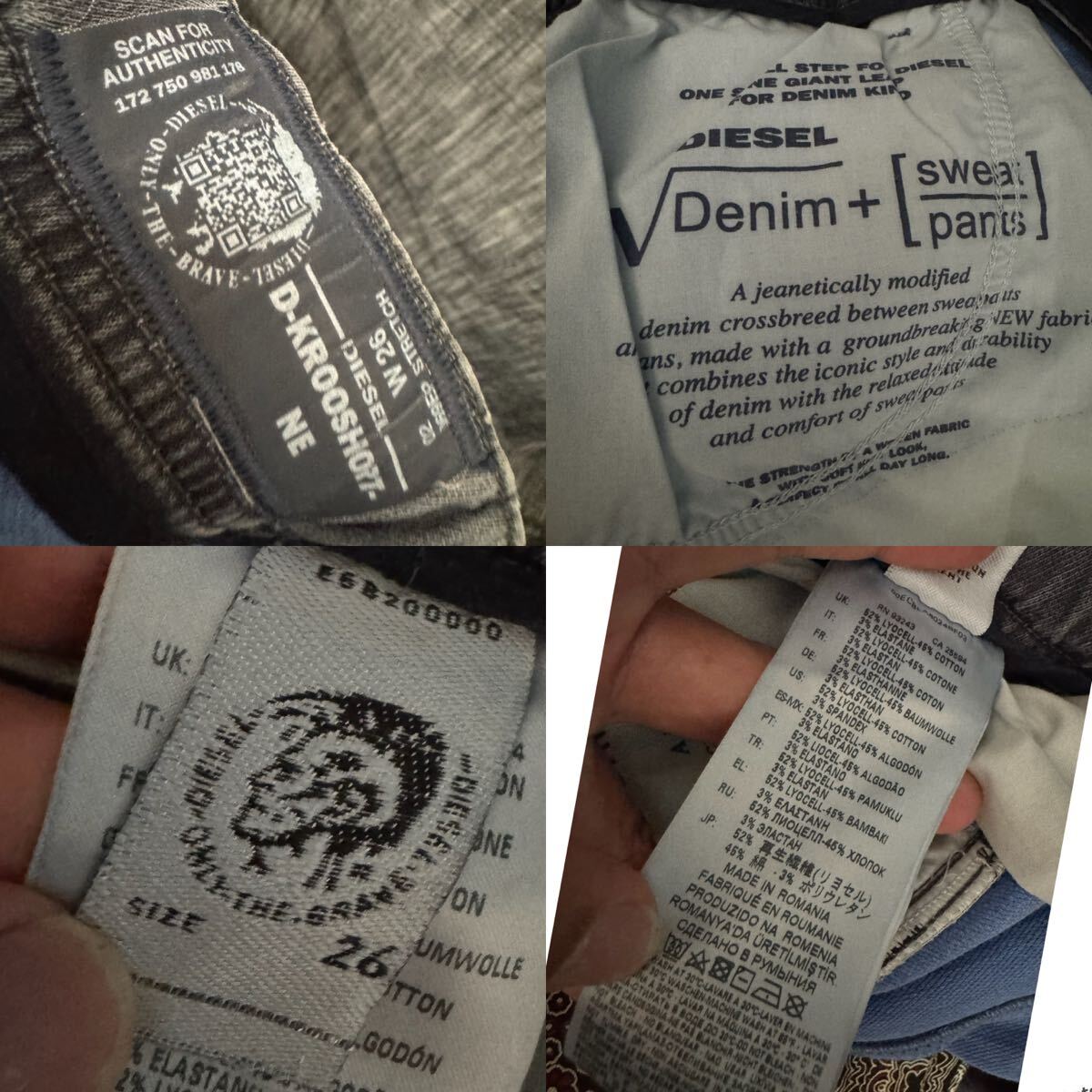 素材にリヨセルが多く使用されており、DIESELの中でも最高品質のモデルになります。リヨセルは、ナイロンやポリエステルのように石油を原料としておらず、ユーカリ(木材)を特殊な溶剤で溶かして作られる(溶剤紡糸法と呼ぶ)再生繊維です。繊維の断面が円形であることから強度が高く、湿潤時の収縮や強度の低下が少ない非常に高品質な素材になります。