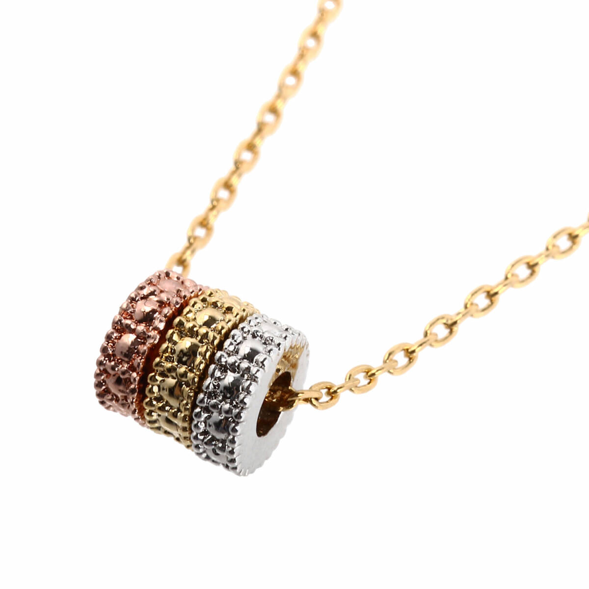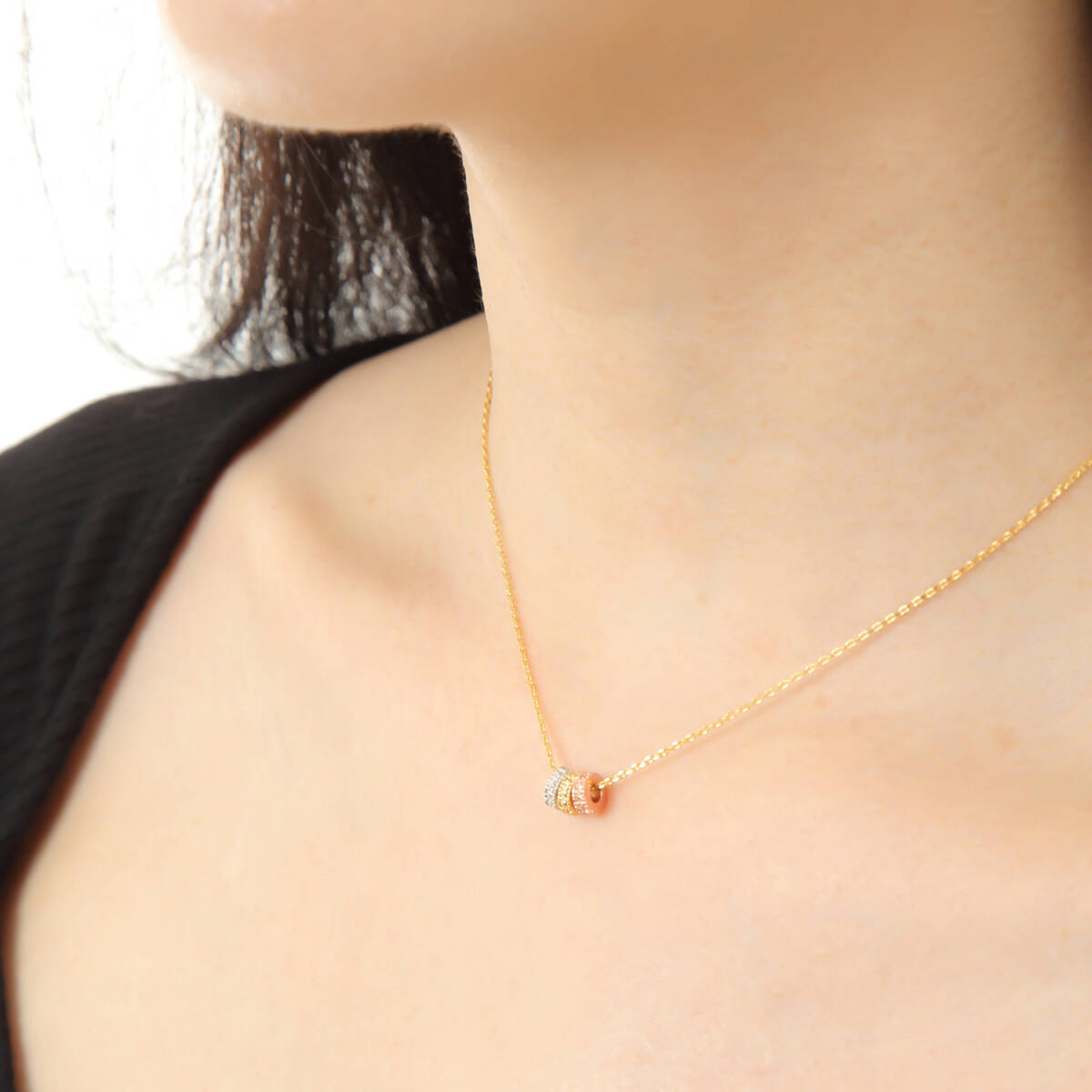 ☆ピンク、ホワイト、イエローの3カラーゴールドリングが胸元に映えるお洒落で上品なネックレスです☆