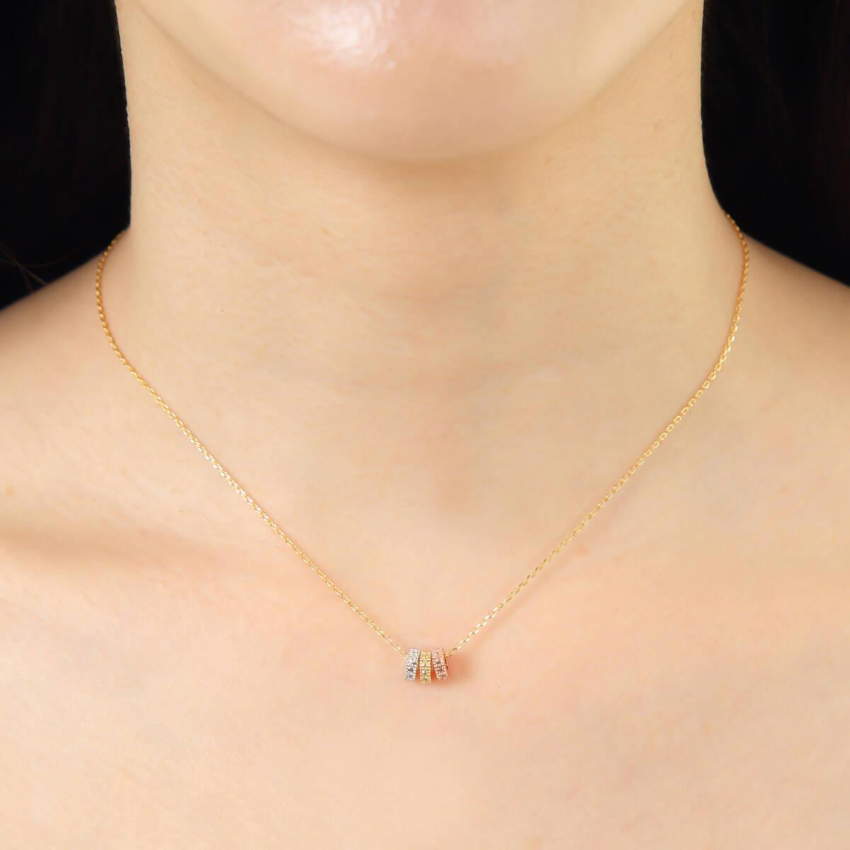 ゴールド ネックレス 3カラー 3連 リング ペンダント K8 ゴールド加工 上品 レディース