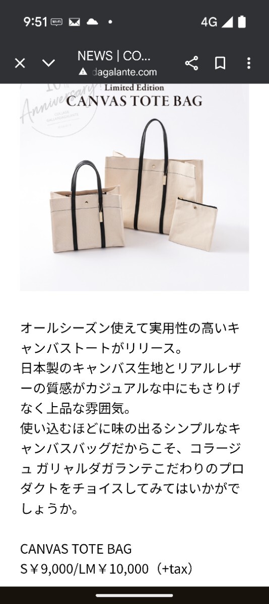 美品!ガリャルダガランテ☆10周年記念トートバッグ、定価11000円、大になります。