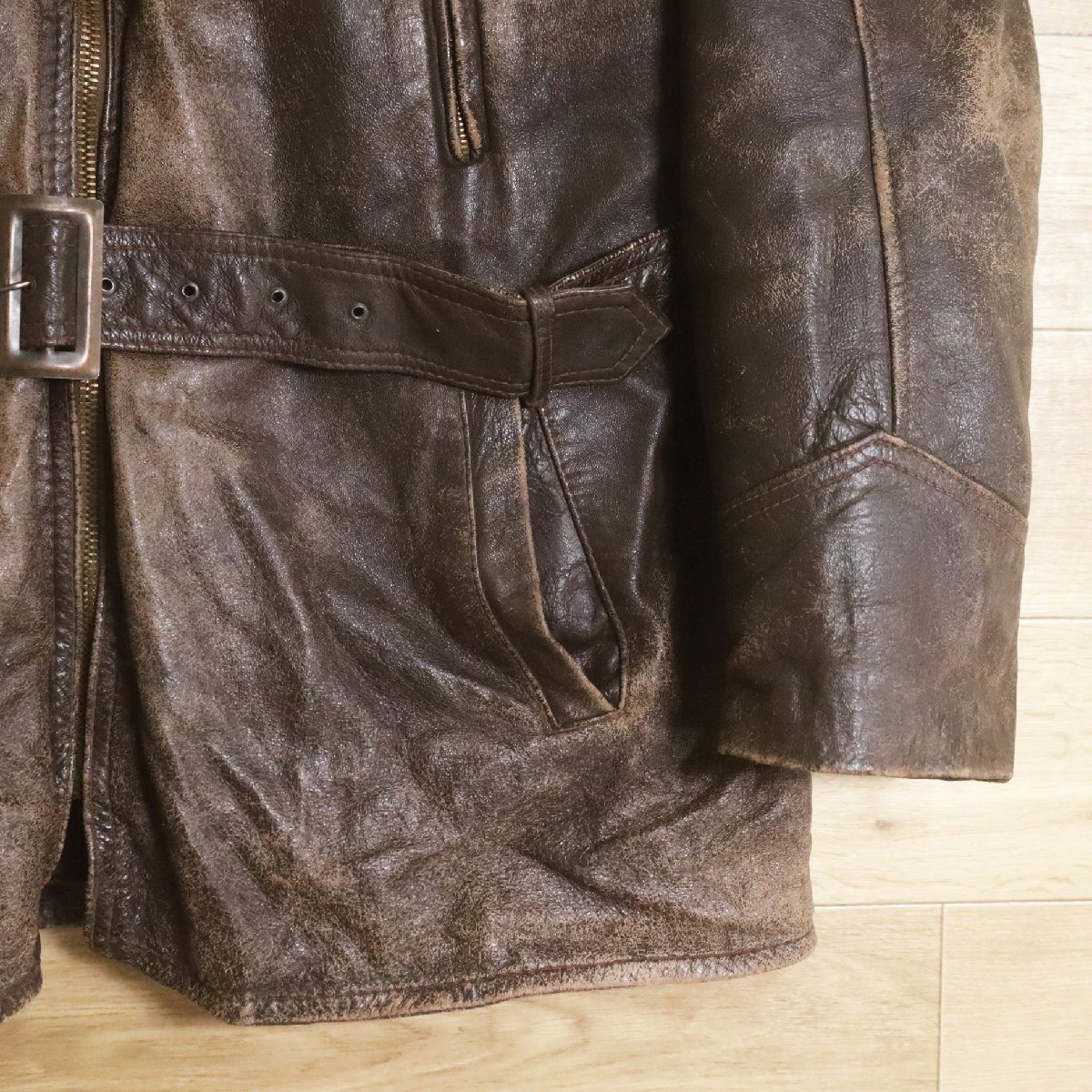 C3T/O8.26-6 70s~ ビンテージ ユーゴスラビア製 VISOKO レザーカーコート 本革 ムートンライナー レザージャケット ライナー付き