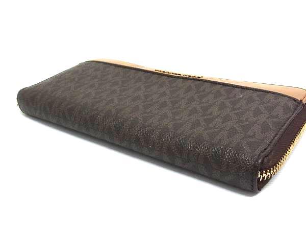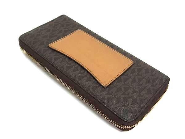 MICHAEL KORS マイケルコース MK柄 PVC×レザー ラウンドファスナー 長財布 ウォレット 札入れ 小銭入れ ブラウン系 DI4754
