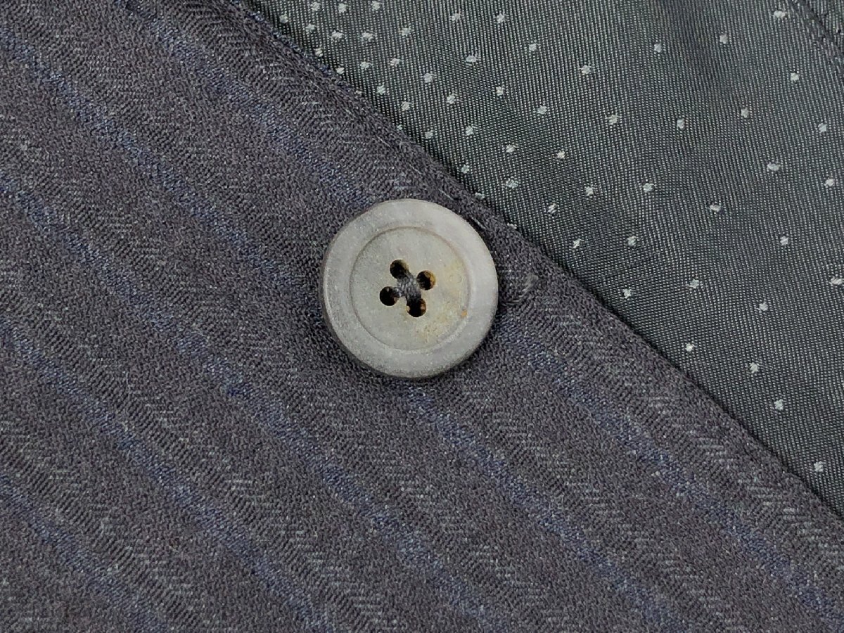 ・全体は淡いネイビー系の糸のストライプ柄です。