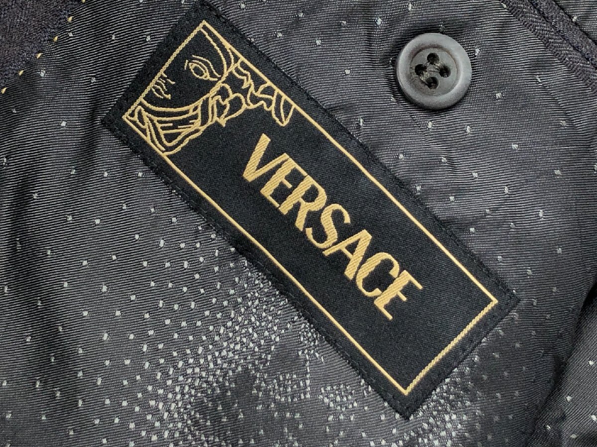 超美品【VERSACE ヴェルサーチ】82482 2ボタン 裏地メデューサ ストライプ スーツ (メンズ) size56R グレー系 イタリア製 ◇35RMS2412◇