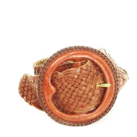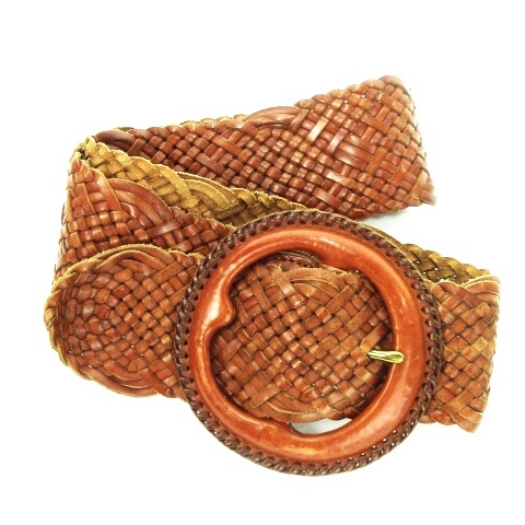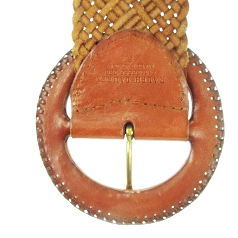 ラルフローレン RALPH LAUREN ベルト 太ベルト レザー 革 メッシュ S 茶 ブラウン /MN2 ■GY18 レディース