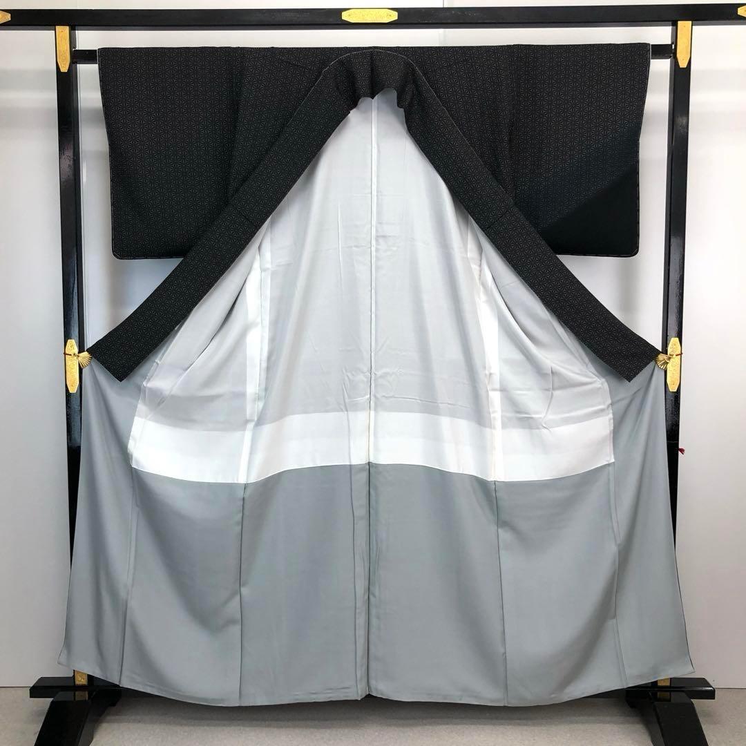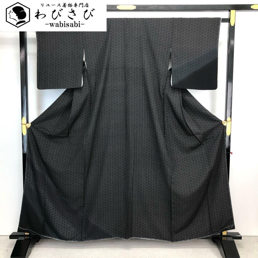 付下げ 麻の葉模様 暈し 墨色 しつけ糸 ふくよかサイズ K-4299 着物 きもの kimono 和服 和装 中古 リサイクル着物 【送料無料】