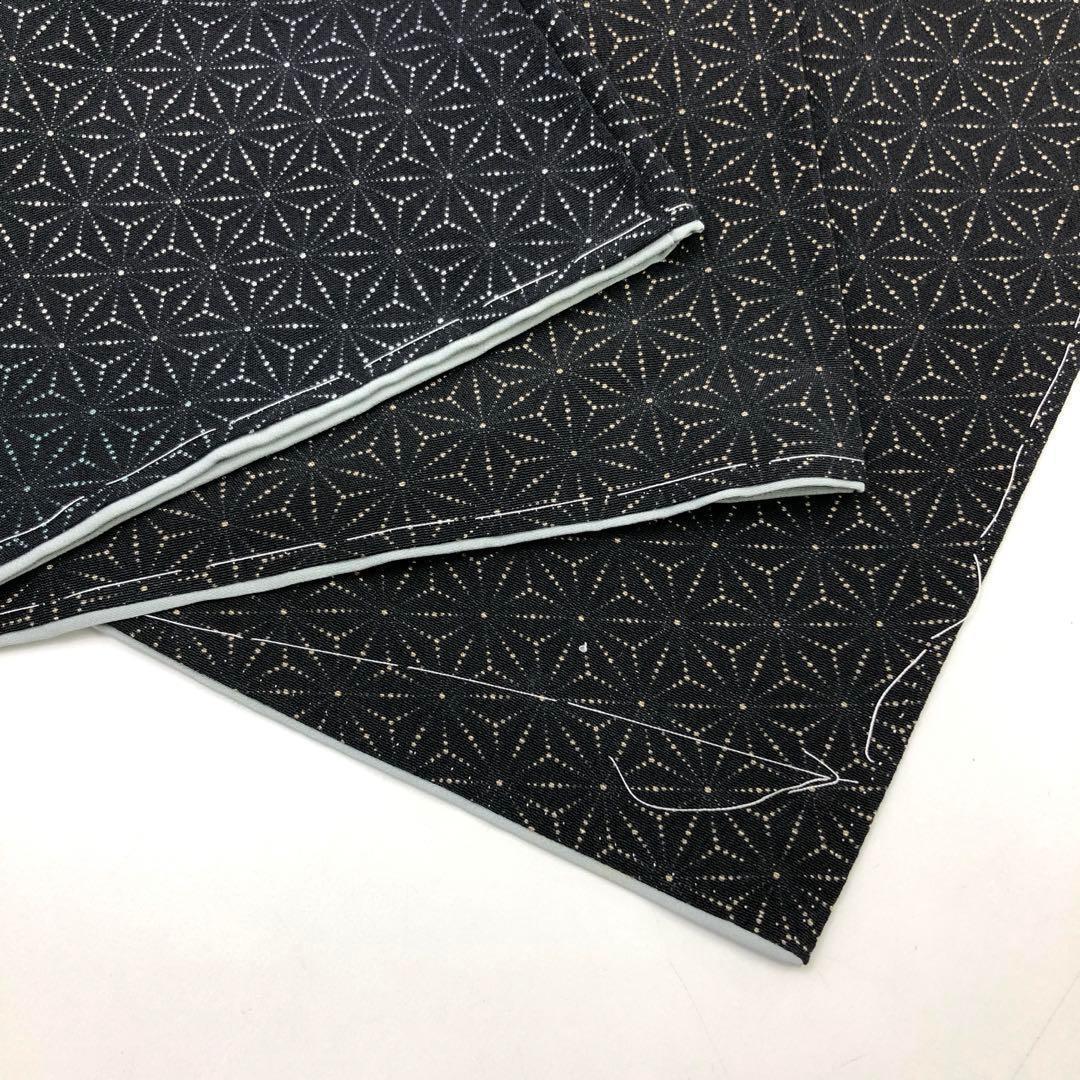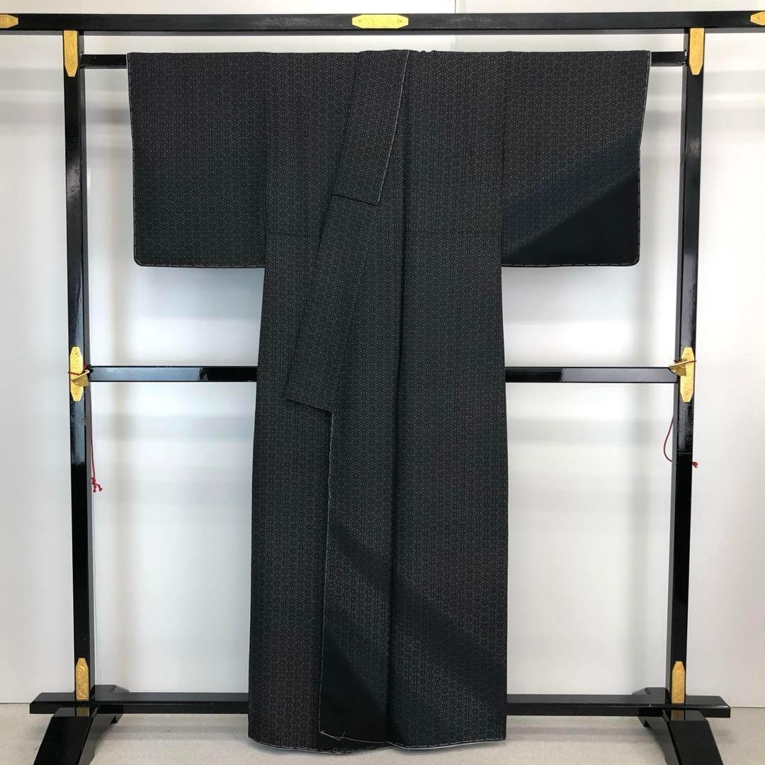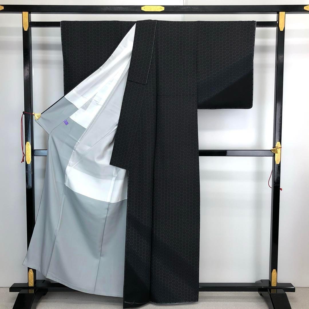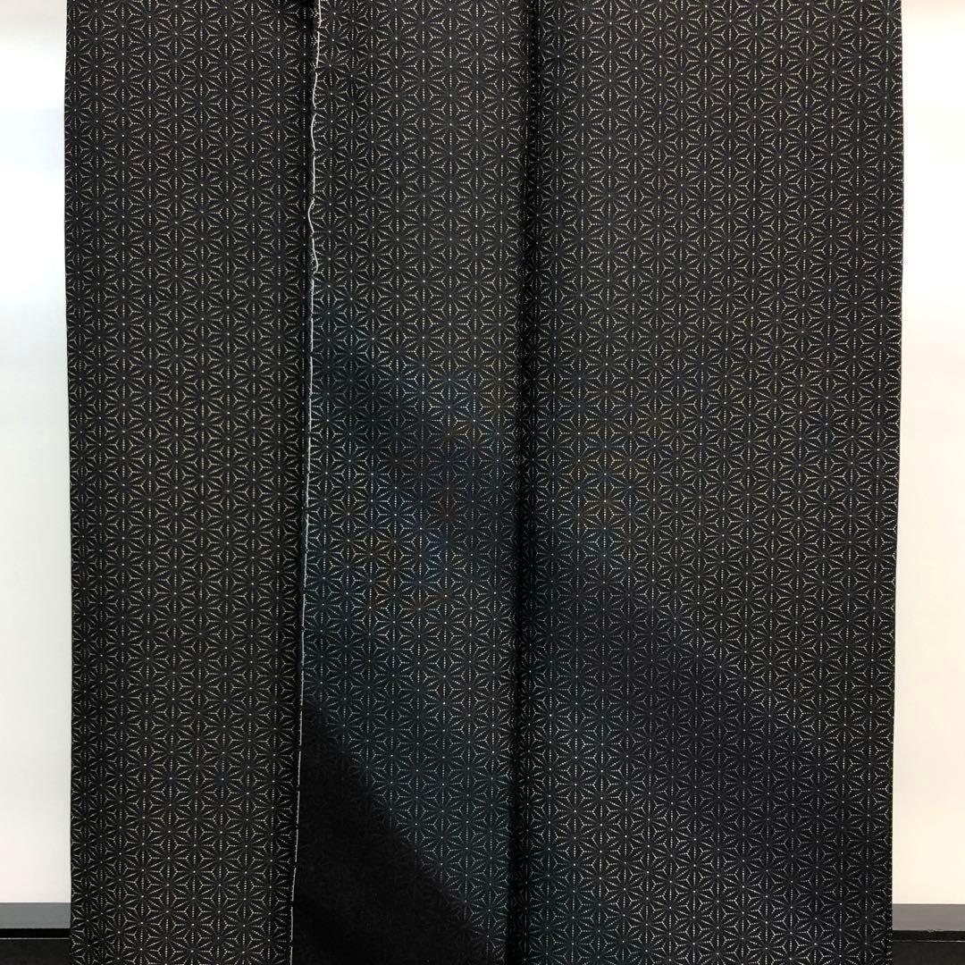 墨色の落ち着いたお色味に麻の葉模様に暈しの柄裄がデザインされた素敵な柄裄のお品でございます。