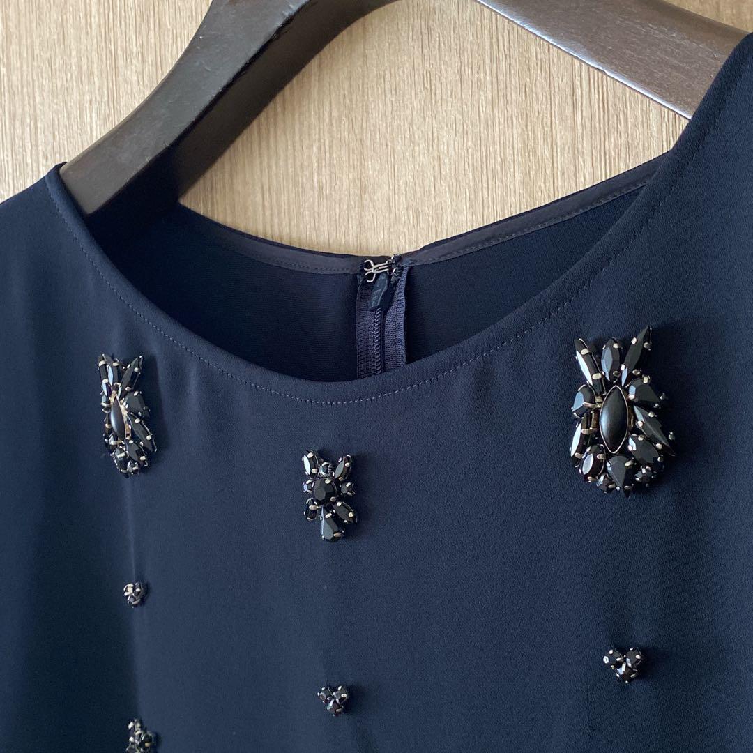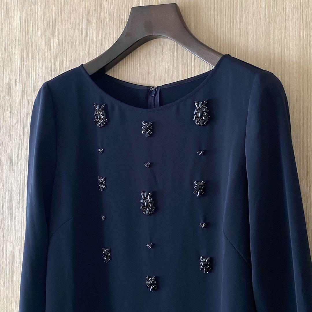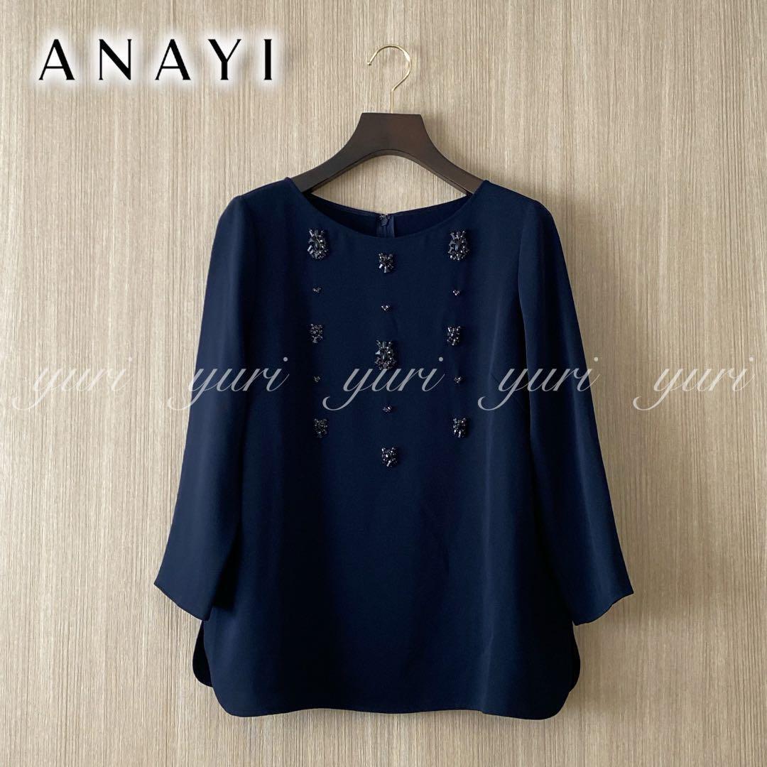 【341】アナイ ダブルクロスビジューブラウス 濃紺 38
