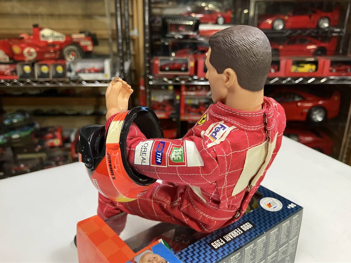 Myコレクションの整理品です。ノンスケールのマテル社のバービー人形フェラーリF1ドライバーM・シューマッハです。子供用の玩具ですからそれなりの出来ですが、雰囲気は感じられます。シューマッハの特徴であるアゴもそれなりに表現しています。レーシングスーツもフェラーリのハネ馬、シェル、ブリジストンなどが再現されていますが、さすがにマールボロのロゴはありません。ヘルメットもバイザーが動いて人形に被る事ができますが、内装が古いので黒い汚れが付きそうです。私は、同時に出品しています1/7スケールのフェラーリF2005のカウルに載せて一緒に飾っていました。ちょっとオーバーサイズですが、ほぼほぼいい感じに見えました。本体はバービー人形ですから手・足の関節や首・腰・などは可動します。購入した時の箱などは処分してしまったのか見つかりませんでした。画像にあります人形が腰かけているミニカーは台座代わりのため出品に含まれません。以上の事などをご理解頂き画像を参考にNC・NRで入札をお願い致します。私、非喫煙でペット等も飼っておりません。発送はゆうパックの80サイズで発送いたします。同時にシューマッハーコレクションを色々出品していますので同封発送も大歓迎です。ゆうパックは○○急便や○○運輸よりは若干扱いが丁寧ですが、輸送中に部品外れるかもしれません、落札者様にて補修願います。
