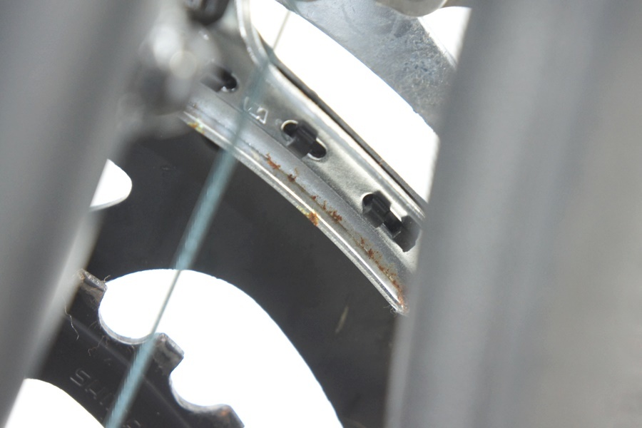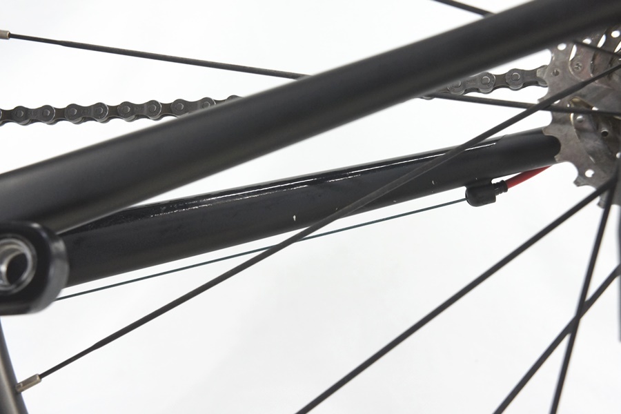右シートステー・右チェーンステー内側・ダウンチューブにキズ、トップチューブ・ハンドルバー中央付近・左ブレーキレバー・前後クイックリリースレバーに小傷、左クランクにスレ、フロントディレーラーに小サビ、左シフターに劣化、リアハブに日焼け変色がございますが、その他小傷程度で使用感の少ない美品となります。