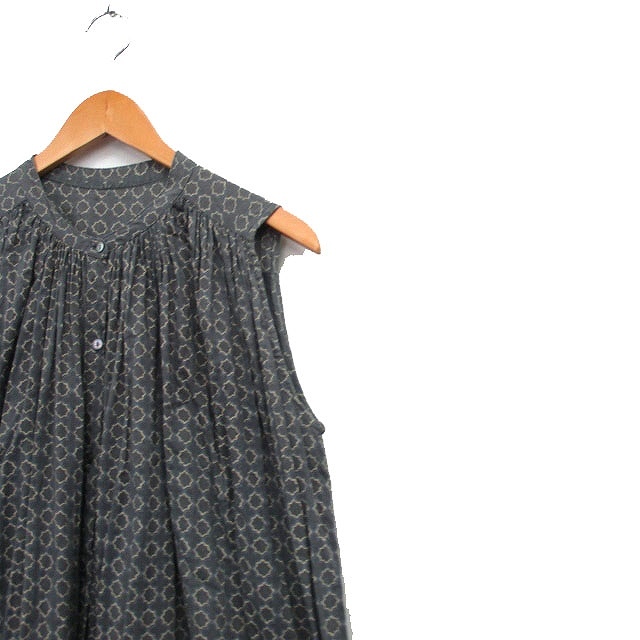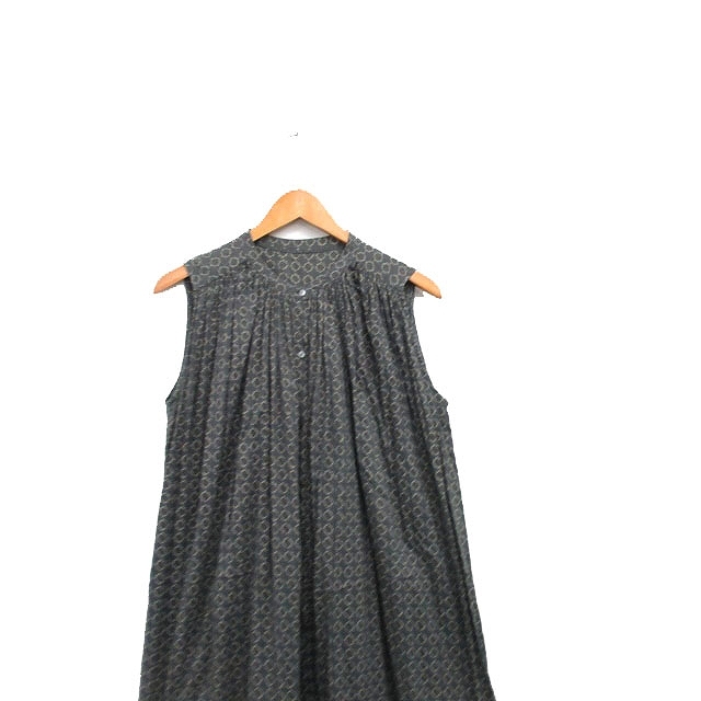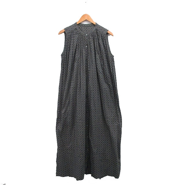 ノーリーズ Nolley's ワンピース ノースリーブ ロング コットン 総柄 チャコールグレー /KT34 レディース
