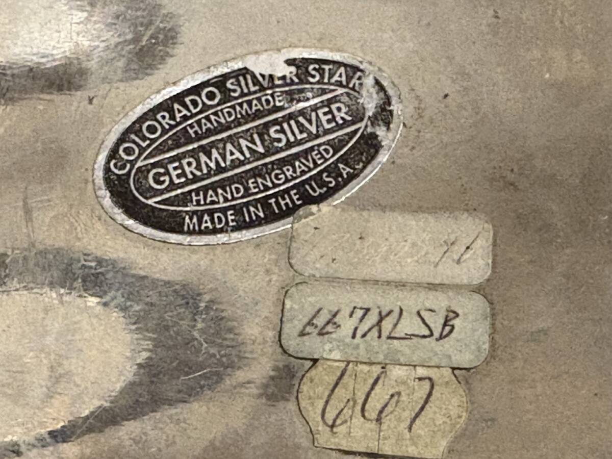 □ コロラドシルバースターのバックルです。メイドインUSA、素材はジャーマンシルバー(ニッケル素材)や銅などです。一般的なサイズよりも一回りは大きいのでバックルで主張したい方や体が大きい方向けサイズです。いかがでしょうか。