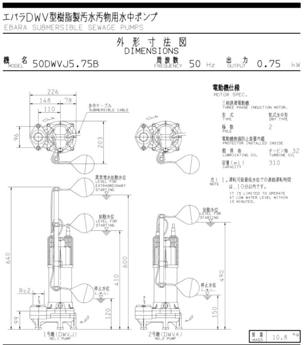 | ▼商品名 | [未開封品] 荏原製作所 エバラ EBARA DWV型樹脂製汚水汚物用水中ポンプ DWVJ1244 50DWVJ5.75B 50Hz 水中ポンプ ポンプ 50Hz 0.75kW 3相200V モータ駆動 自動交互 (2) |