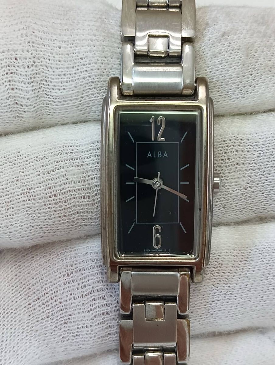 SEIKOセイコー ALBAアルバ 腕時計 クオーツ 1N01-0FX0 シルバー ステンレス 黒文字盤 時計 現状品