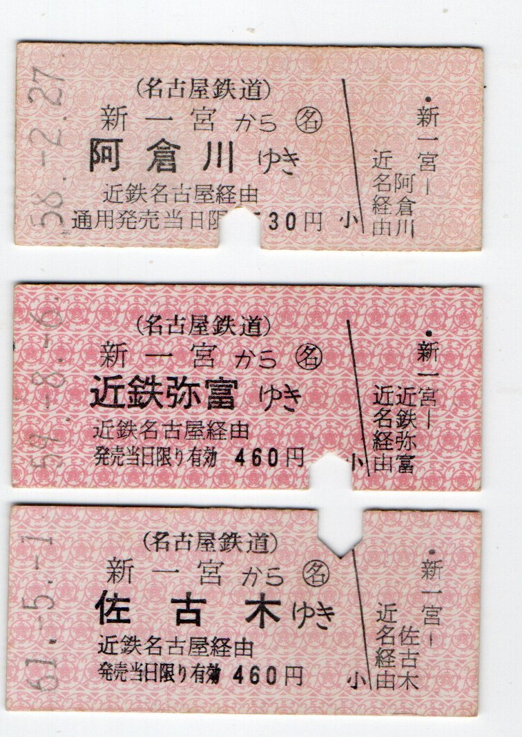 T 名鉄 新一宮から 近鉄名古屋経由 連絡乗車券セット S58~61年 T
