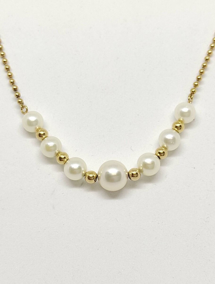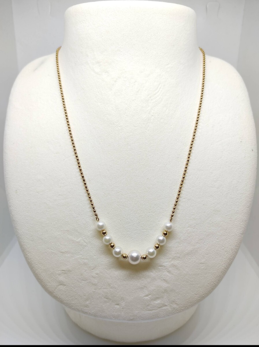 パールの淡い輝き、K18の輝きがそれぞれ綺麗でオシャレなネックレスに仕上がっています。