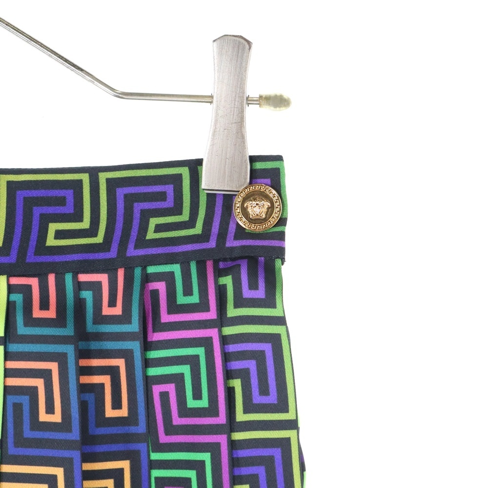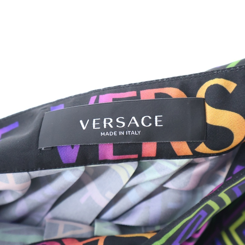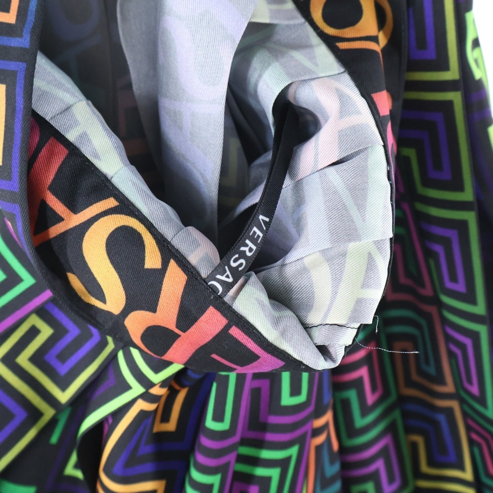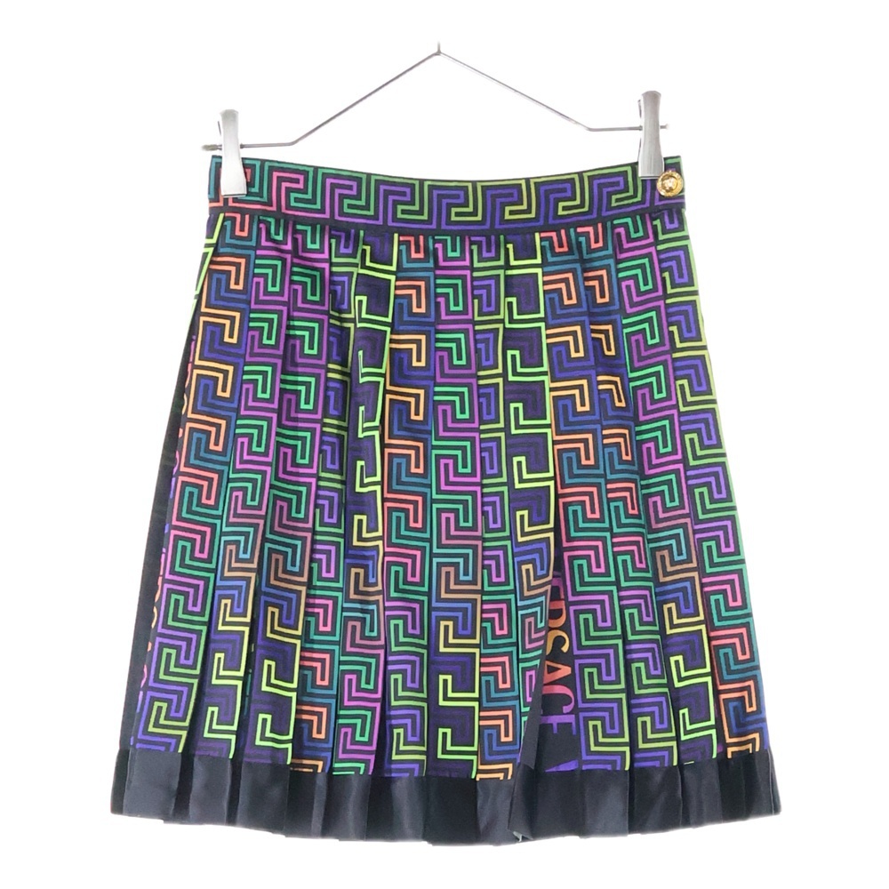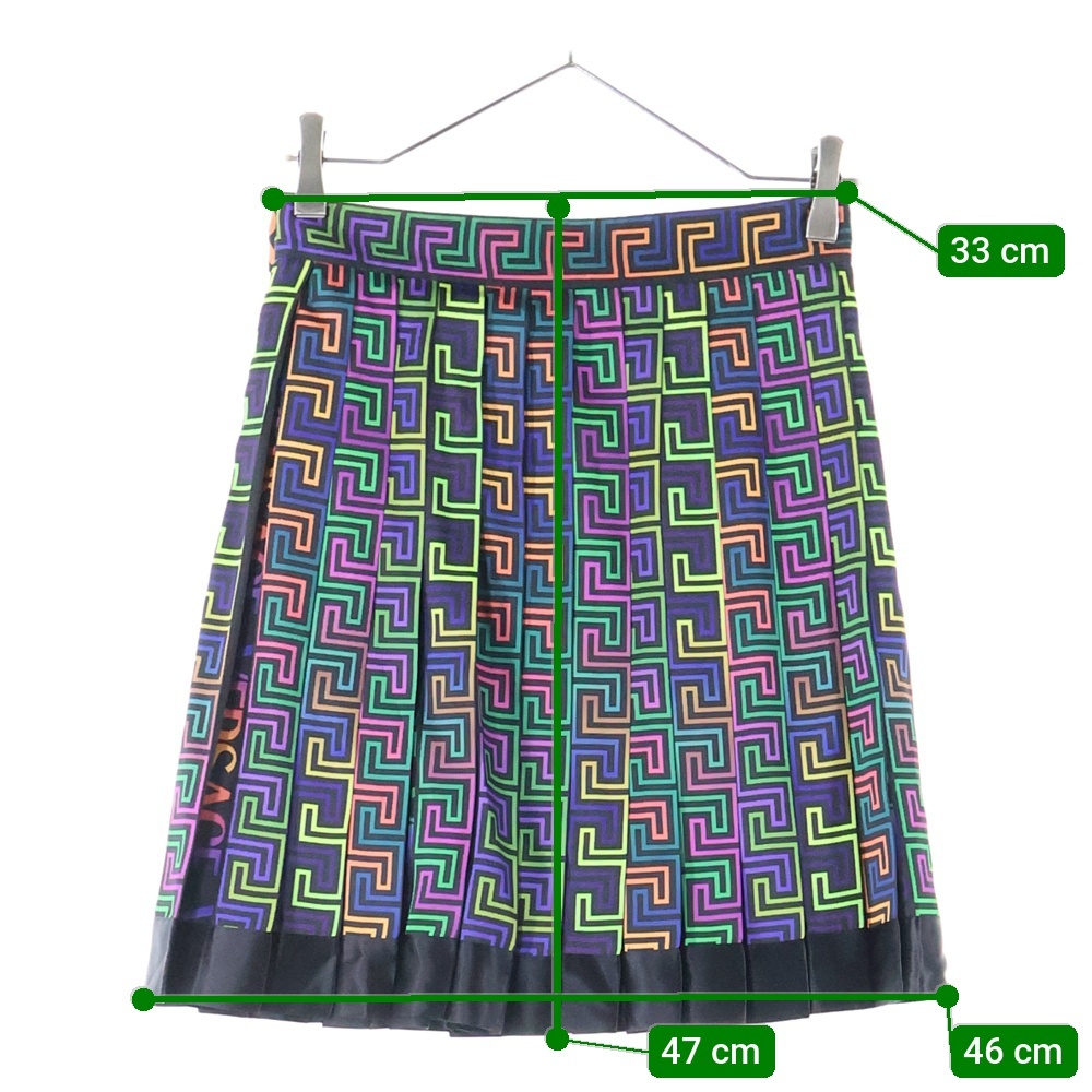 VERSACE ヴェルサーチ ロゴ総柄 ポリエステル プリーツスカート マルチ レディース 1001499