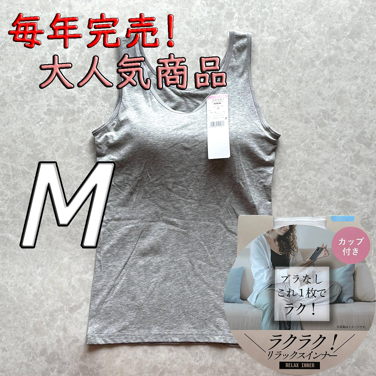 レディース M ブラトップ タンクトップ カップ付き インナー トップス ノンワイヤー 肌着 ルームウェア ブラジャー スポブラ グレー