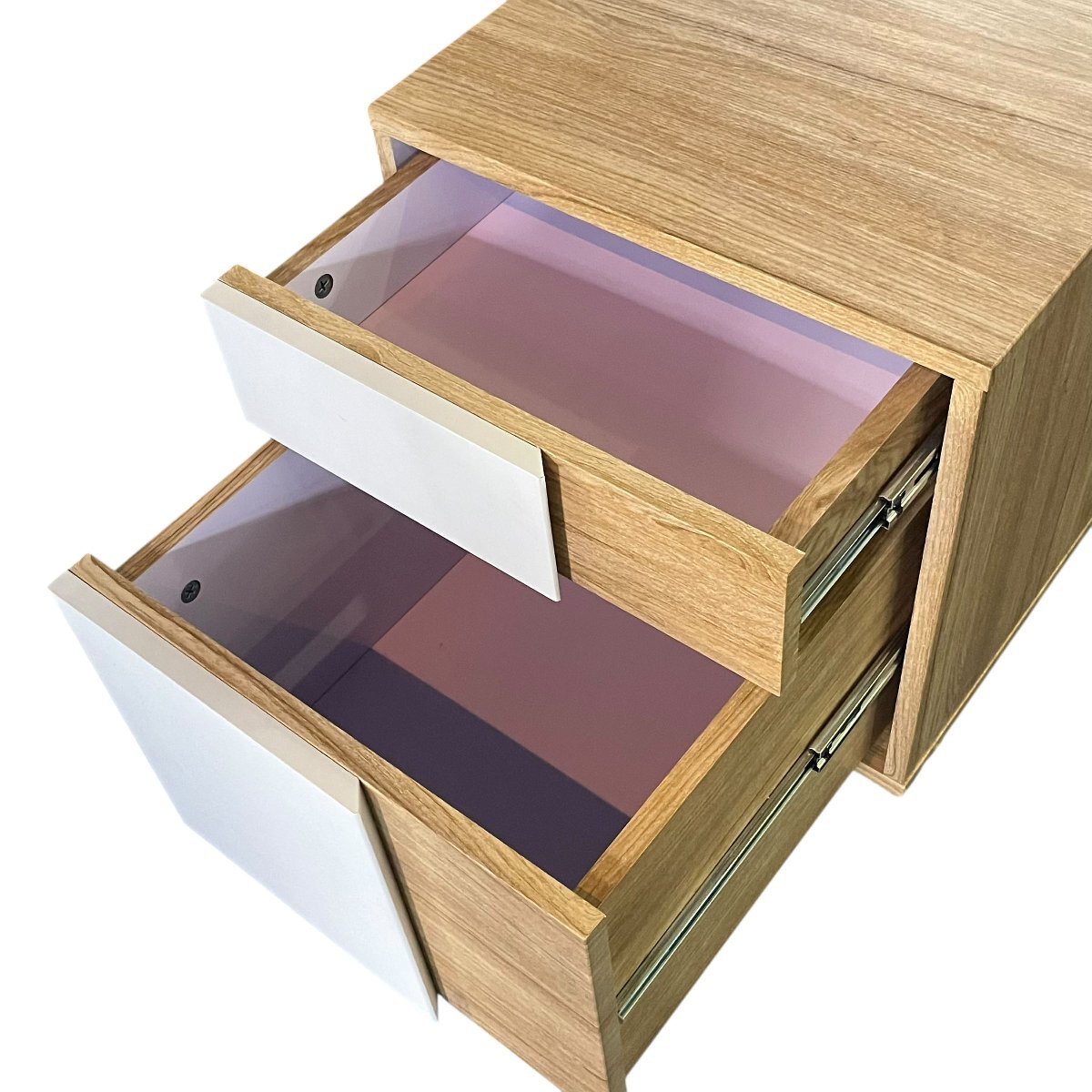 中古●タマリビング ●キャビネット モデルノⅡ キャスター付き 袖机 ナチュラル×ホワイト 札幌