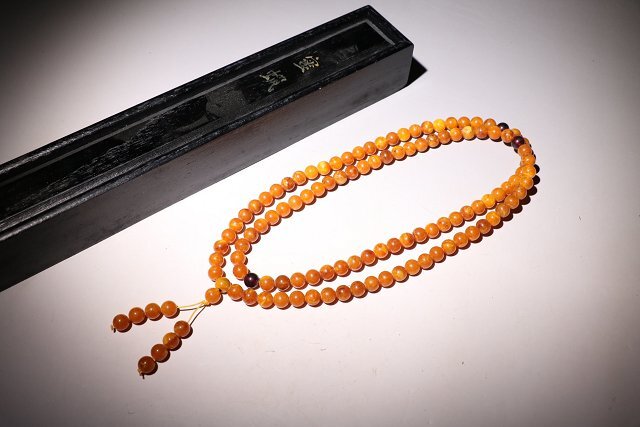 | ◇商品説明◇ | 蜜蝋数珠の出品です。写真の塗り箱に収まっております。状態につきましては、スレ、小キズ、ヨゴレ等がありましたので画像にて御確認の程宜しくお願い致します。
