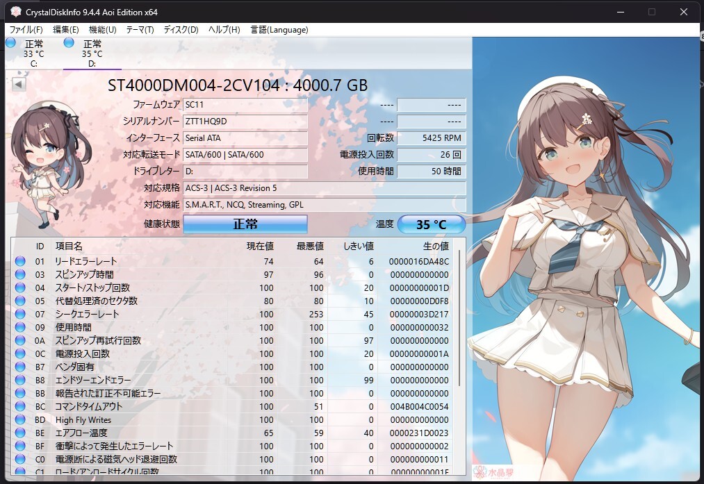 ※CrystalDiskInfoチェック:正常と判定されましたが、