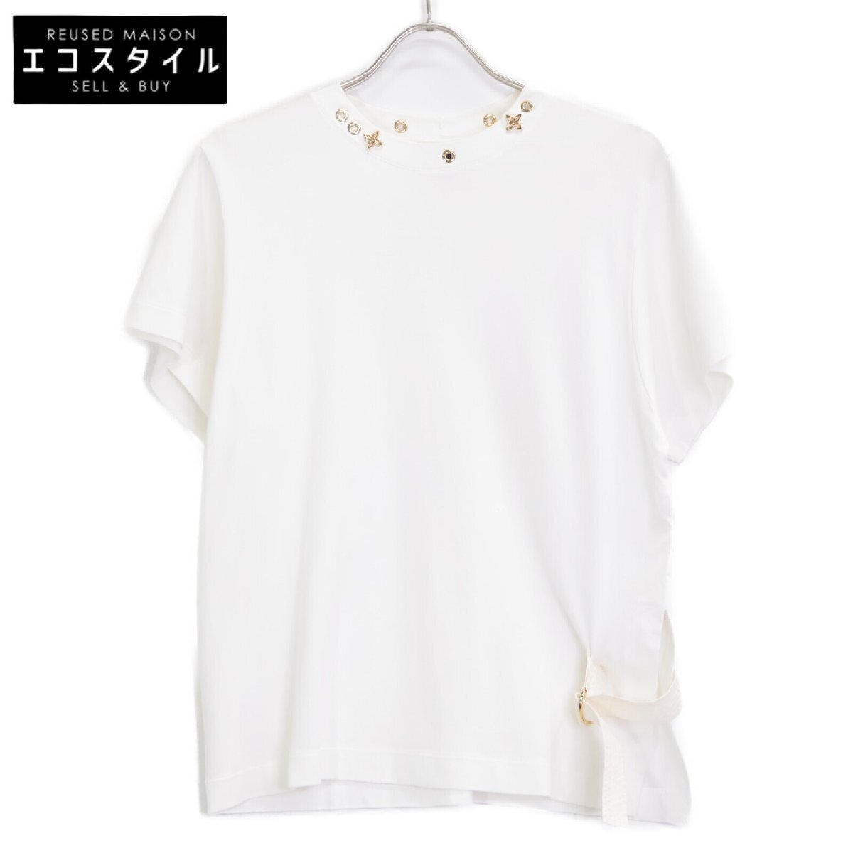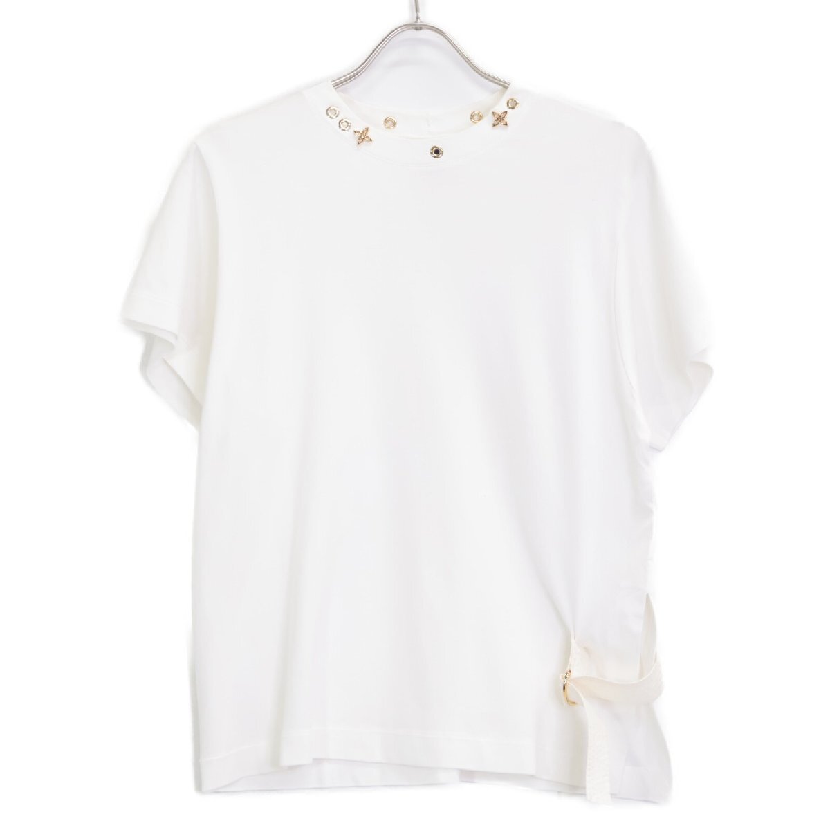 LOUIS VUITTON ルイヴィトン ホワイト JGTS03 サイドストラップTシャツ ホワイト S トップス コットン レディース 中古