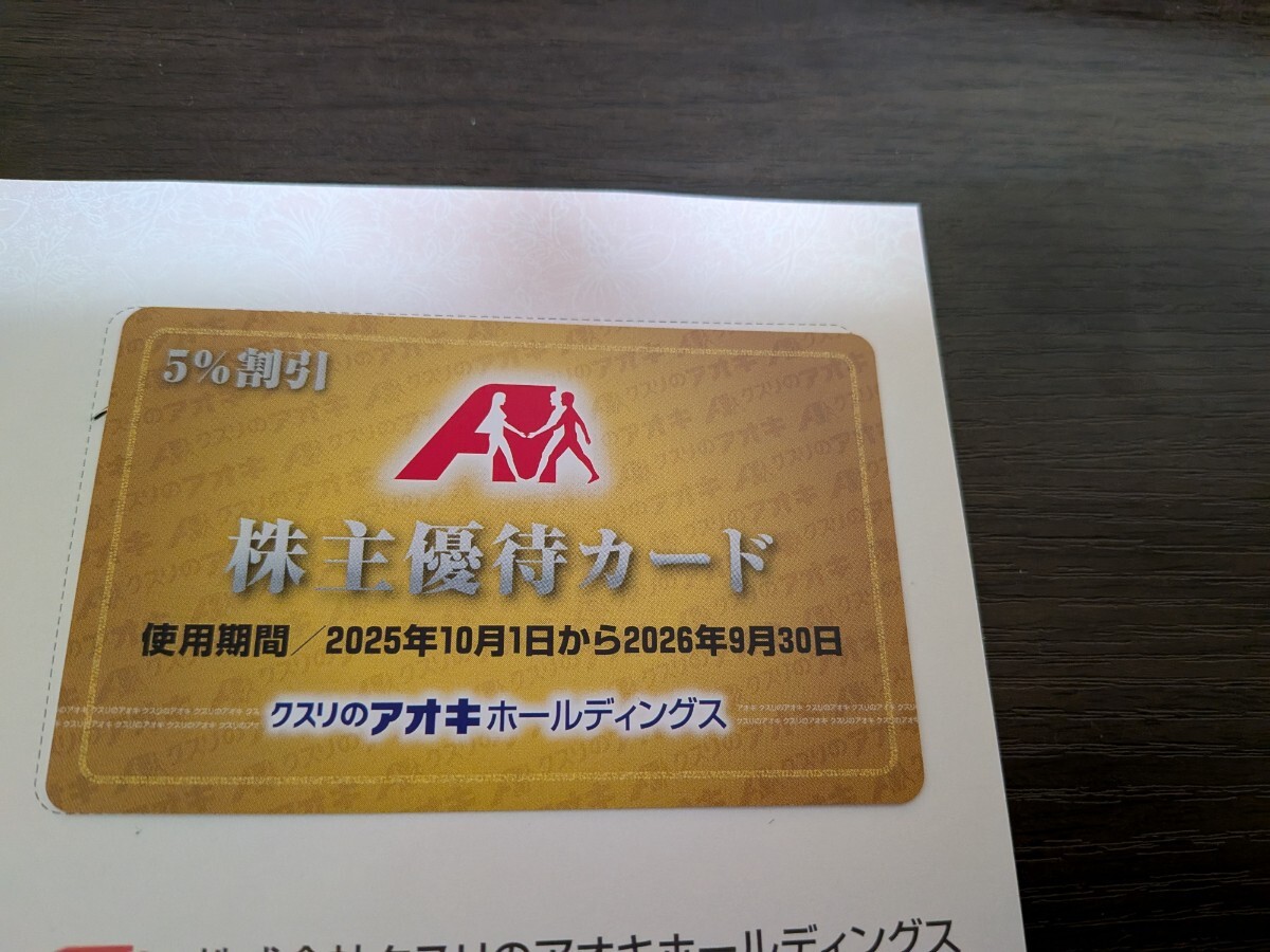 ★送料無料☆  5%割引 男性名義 匿名配送無料 クスリのアオキ 株主優待 カード 1枚 2025年10月1日-2026年9月30日迄