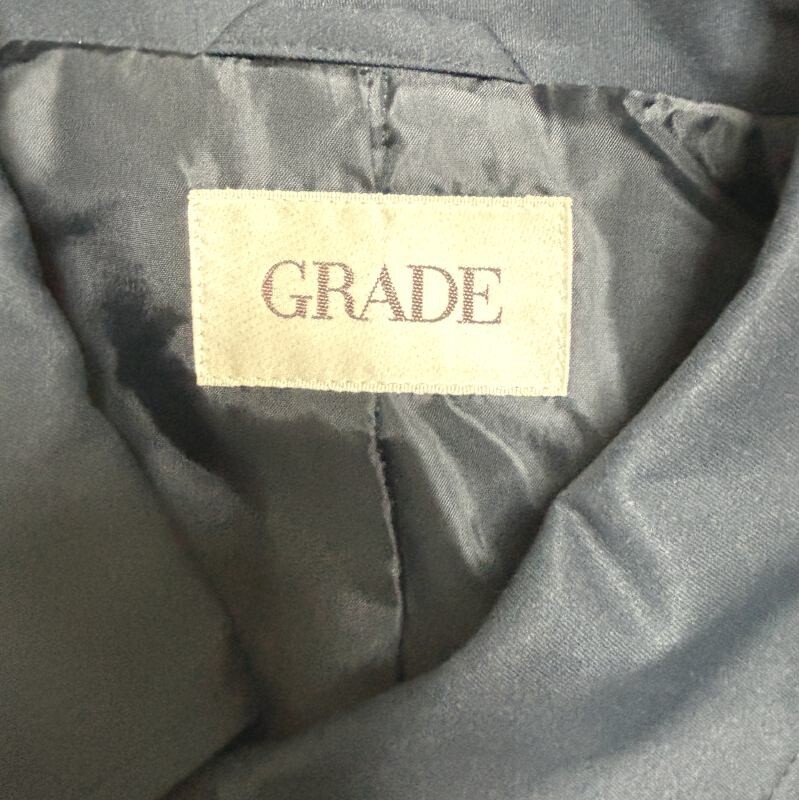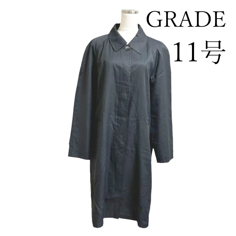 GRADEのレディースステンカラースプリングコートシンプルな紺の無地デザイン。サイズは11号の大きめ仕様で、ゆったりとしたシルエットが体型を気にせず快適に着用いただけます。ステンカラーの上品なデザインは、通勤やお出かけにも使いやすく、春先や秋口のライトアウターとして最適です。軽量ながらも風を通しにくく、暖かさを保ちつつ涼しさも感じられるため、気温の変わりやすい季節に重宝します。状態は使用頻度が少なく、汚れや傷も見られない美品。光沢感のある素材のスプリングコート。ポケットあり。◆サイズ◆11号 バスト106 ゆき丈78 袖幅20 着丈100 ◆素材◆画像参照