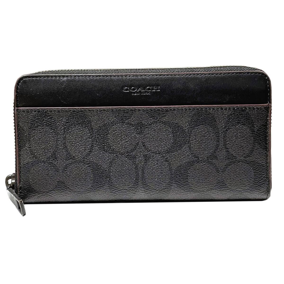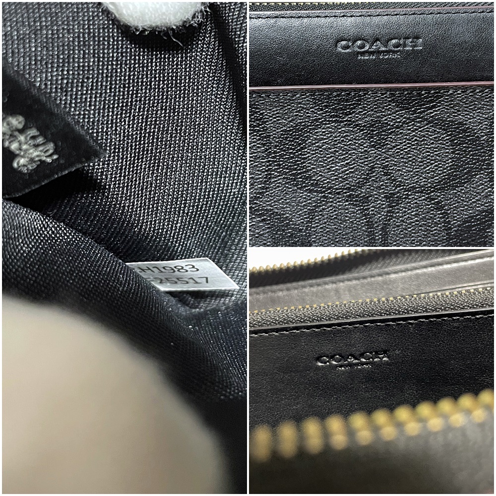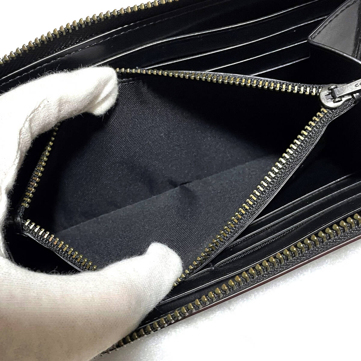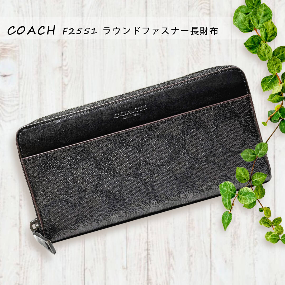 COACH F2551 ラウンドファスナー長財布コーチブランドブラック黒鑑定済み本物ロゴ総柄ロングウォレット定番人気黒革美品ほぼ新品