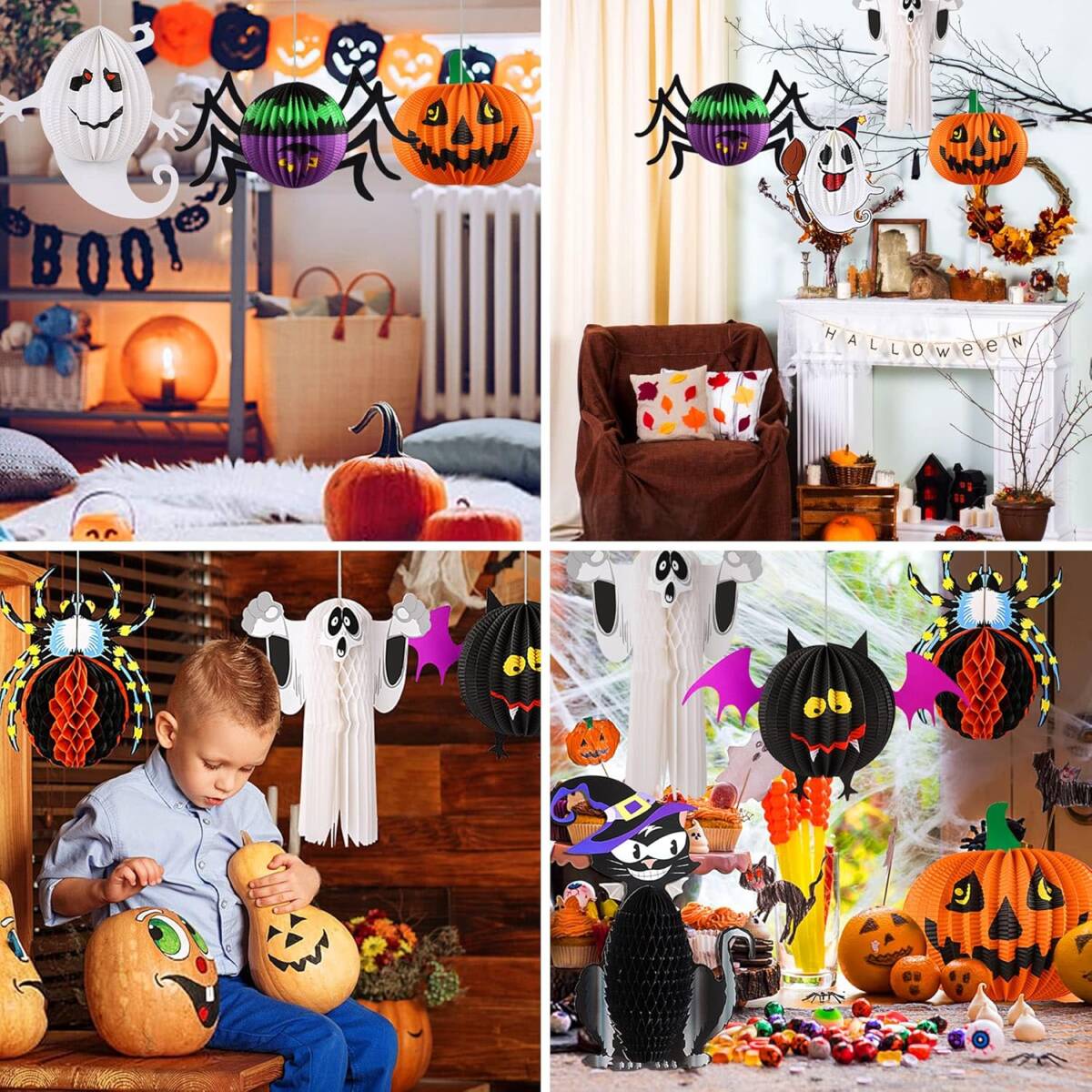ハロウィン 飾り 吊り下げ 9点セット パーティー 装飾セット 紙提灯 カボチャ ランタン 折りたたみ式 クロネコ 幽霊 ゴースト