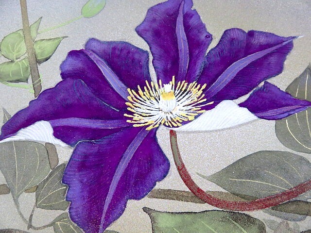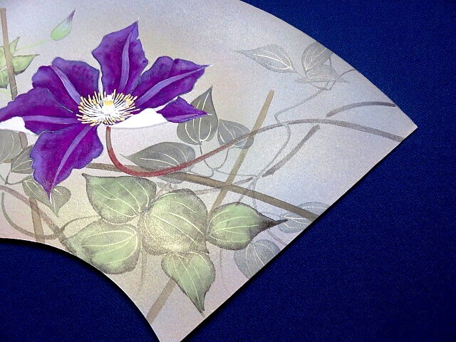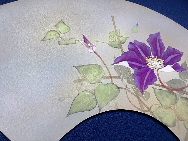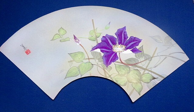 【真作】東笙蒼 鉄線 京都府出身 日本清興美術協会会員 扇面画第一人者