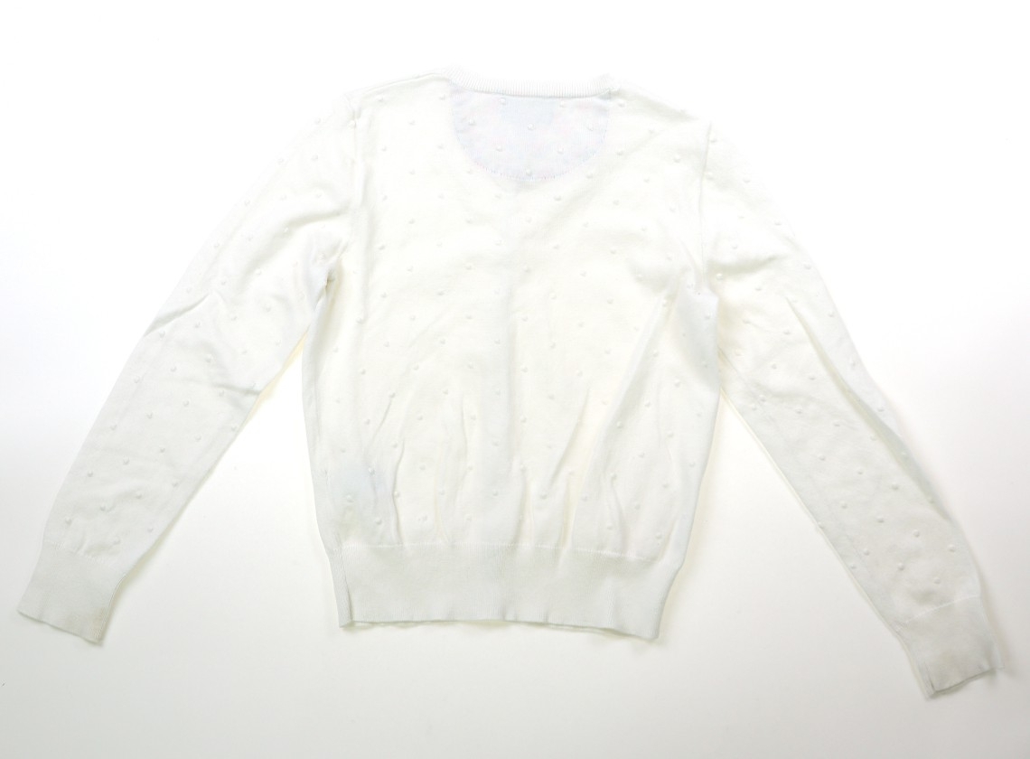 コットン・ナイロン素材のニット地。袖口が薄汚れています。やや毛羽立ち・洗いざらし感があります。