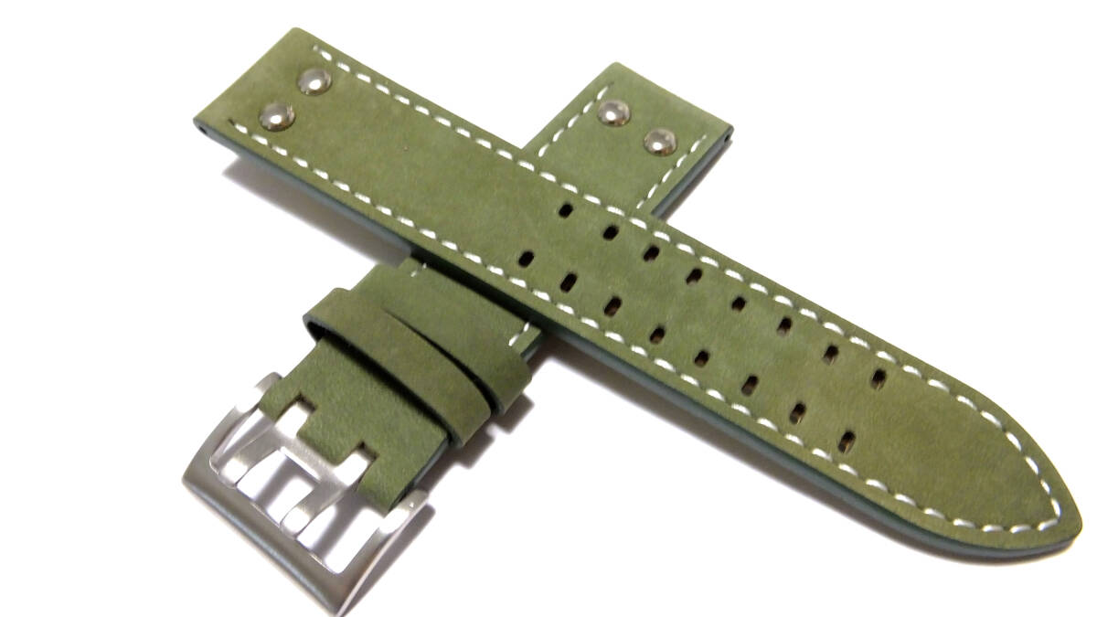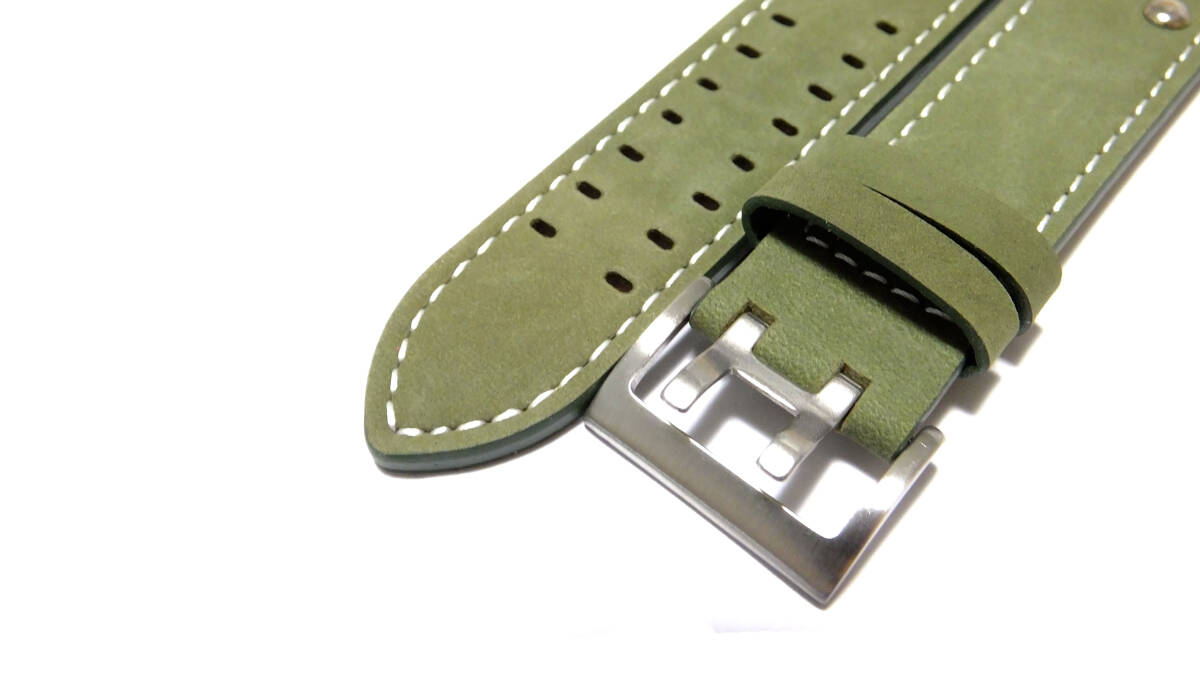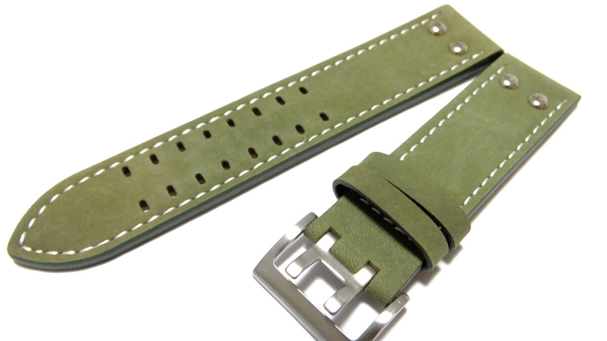 パラレル突く棒尾錠 レザーストラップ モスヌバック 22mm (ハミルトン交換用) 32HAMIL24