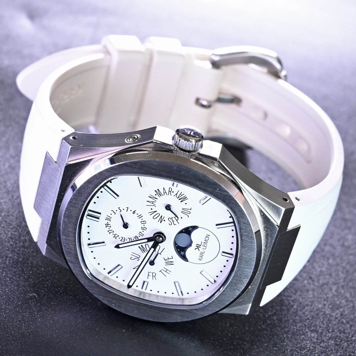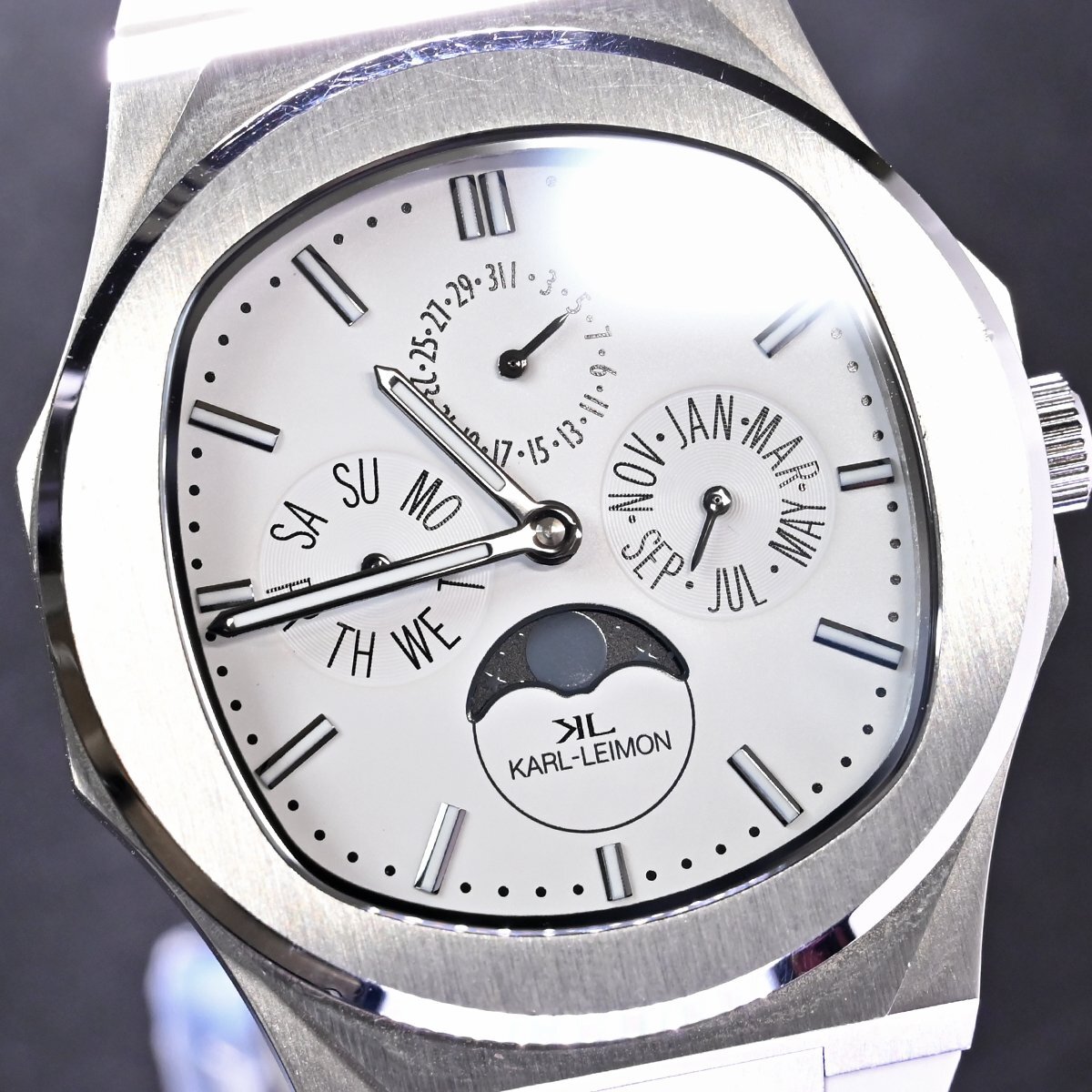 カール・レイモンのマジェスティ ムーンフェイズです。 2017年に日本に移住した2人の時計愛好家によって設立されました。 クラシックな魅力を追求して誕生した彼らのクラシックウォッチは、日本のクラウドファンディングで記録的な支持を集め、1億円の資金調達に成功し、新たな基準を打ち立てました。 ※基本動作確認済。 |