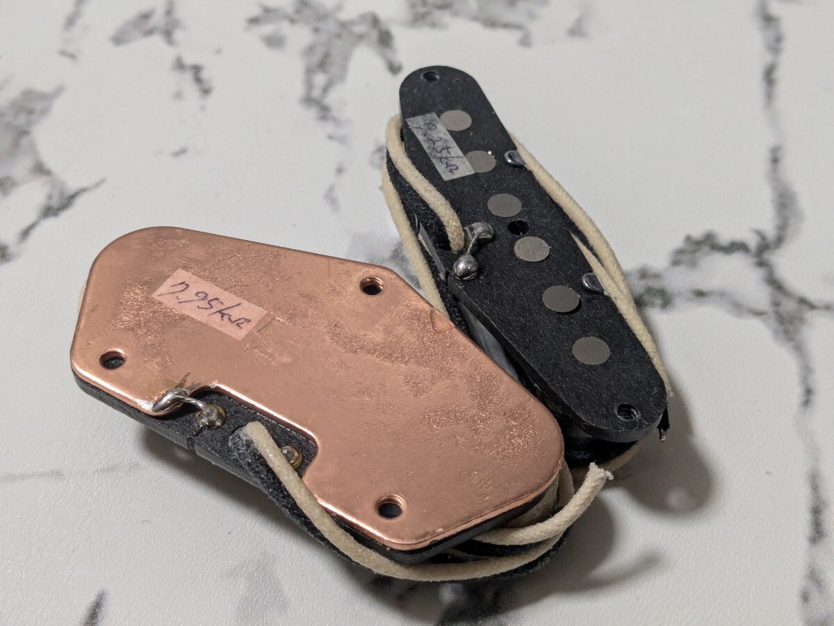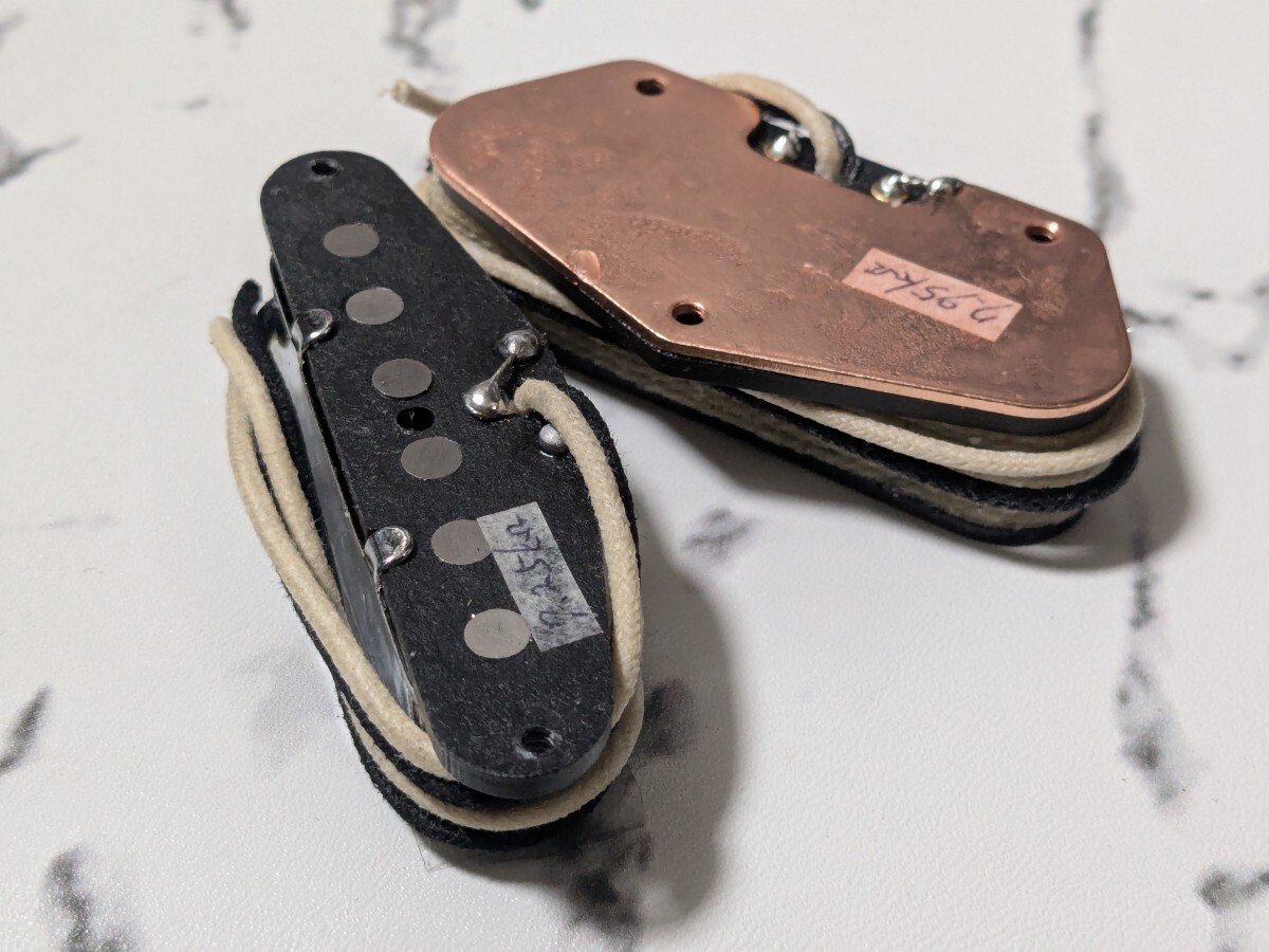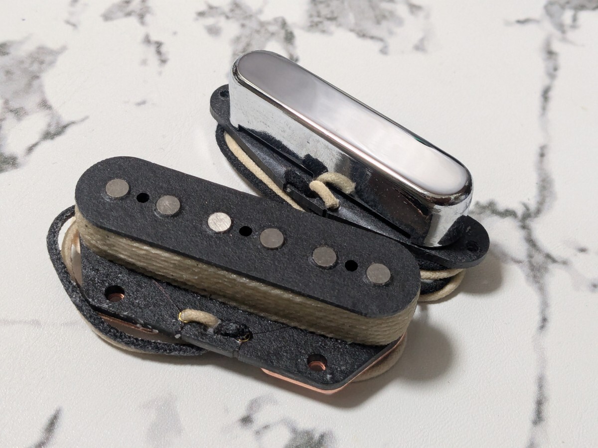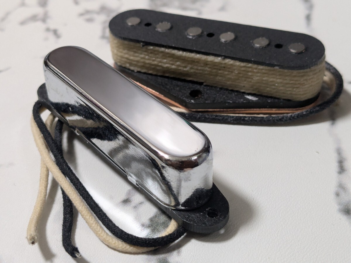 ※リアピックアップのポールピースの高さは同じですが、ビンテージの経年変化の様にボビンのトップに反りが見られる物がございますのでご了承下さいませ。(反りによるコイルの動きがビンテージサウンドの一因と言う説もあったり、経年で反った見た目を好む方もいらっしゃったり、、)
