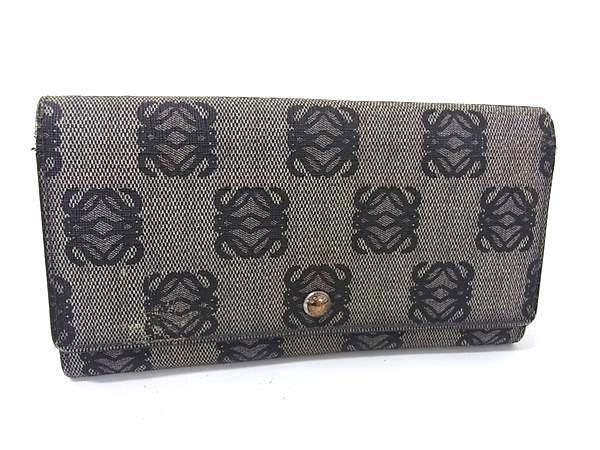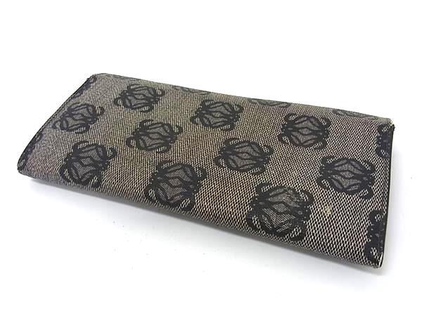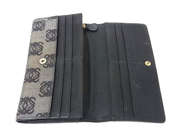 1円 LOEWE ロエベ リピートアナグラム PVC 二つ折り 長財布 ウォレット 小銭入れ 札入れ カード入れ グレー系×ネイビー系 FU1337