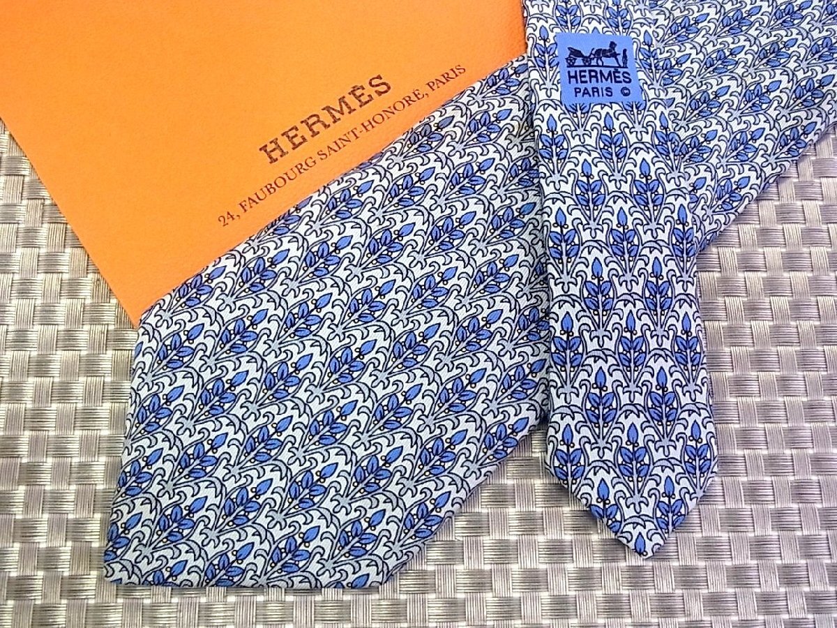【在庫処分セール】●特売●FK2-2253●エルメス【葉っぱ 植物 柄】ネクタイ●