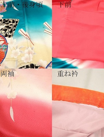 | 【祝着】 身丈 95.5cm(肩から) 裄丈 54.5cm(肩上げ 2.5cm) 袖丈 74.5cm 縫込み 2cm 袖幅 33cm 前幅 19.5cm 後幅 26.5cm 着物縫いこみ 内揚げ 0cm (腰上げ 19cm) 裄 お袖側 約2cm 身頃側 約2cm 【長襦袢】 身丈 84.5cm(肩から) 裄丈 50cm(肩上げ 3.5cm) 袖丈 75cm 縫込み 2cm 袖幅 30.5cm 前幅 20.5cm 後幅 27cm 着物縫いこみ 内揚げ 0cm (腰上げ 17.5cm) 裄 お袖側 約3cm 身頃側 約2cm 《 サイズについてはこちら 》 |