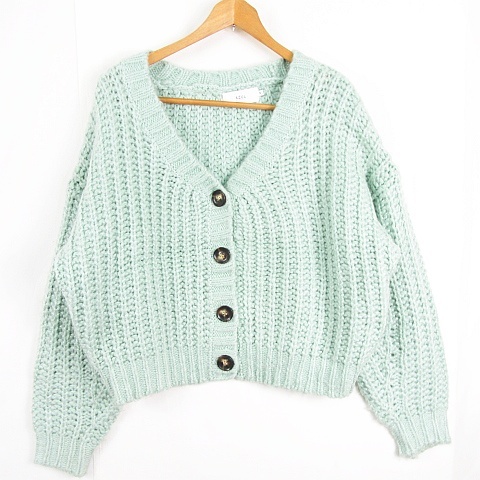 アズールバイマウジー AZUL by moussy ローゲージ ニット カーディガン 長袖 S ミントグリーン kz12833 レディース