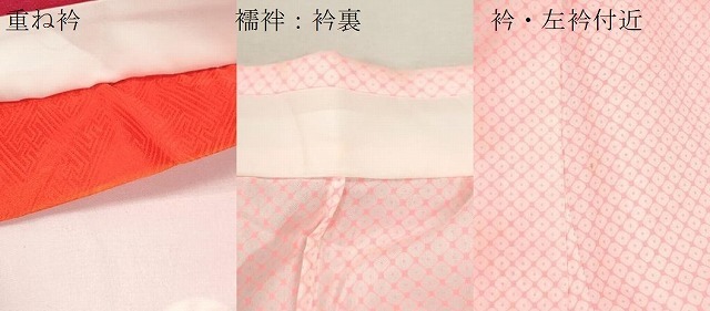 【祝着】 身丈 133cm(肩から) 裄丈 58cm(肩上げ 0cm) 袖丈 74cm 縫込み 1.5cm 袖幅 32.5cm 前幅 18.5cm 後幅 26cm 着物縫いこみ 内揚げ 0cm (腰上げ 0cm) 裄 お袖側 約0cm 身頃側 約1cm 【長襦袢】 身丈 91cm(肩から) 裄丈 55cm(肩上げ 0cm) 袖丈 74cm 縫込み 0.5cm 袖幅 30.5cm 前幅 19cm 後幅 24.5cm 着物縫いこみ 内揚げ 0cm (腰上げ 0cm) 裄 お袖側 約2.5cm 身頃側 約0.5cm 《 サイズについてはこちら 》 |