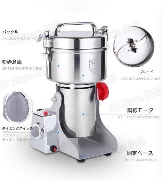 家庭用 業務用 電動製粉機 ハイスピードミル コンパクト 粉砕機 800g 小型 電動ミルスパイス 穀物粉砕機 米粉 小麦 生薬 スパイス粉bhw0240