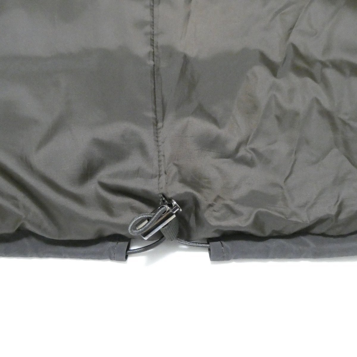 前はダブルジップ開閉、フードと裾にドローコードがあります。