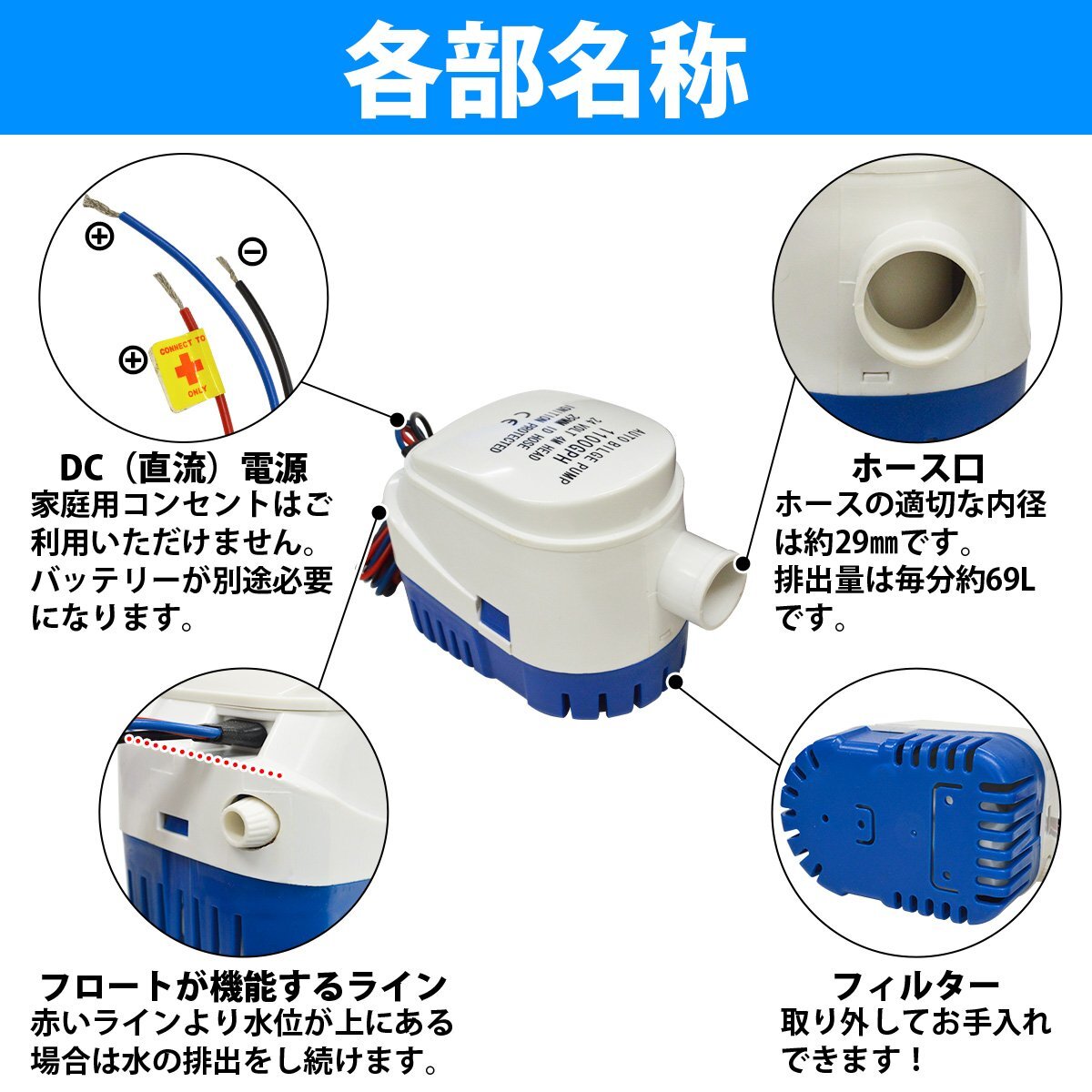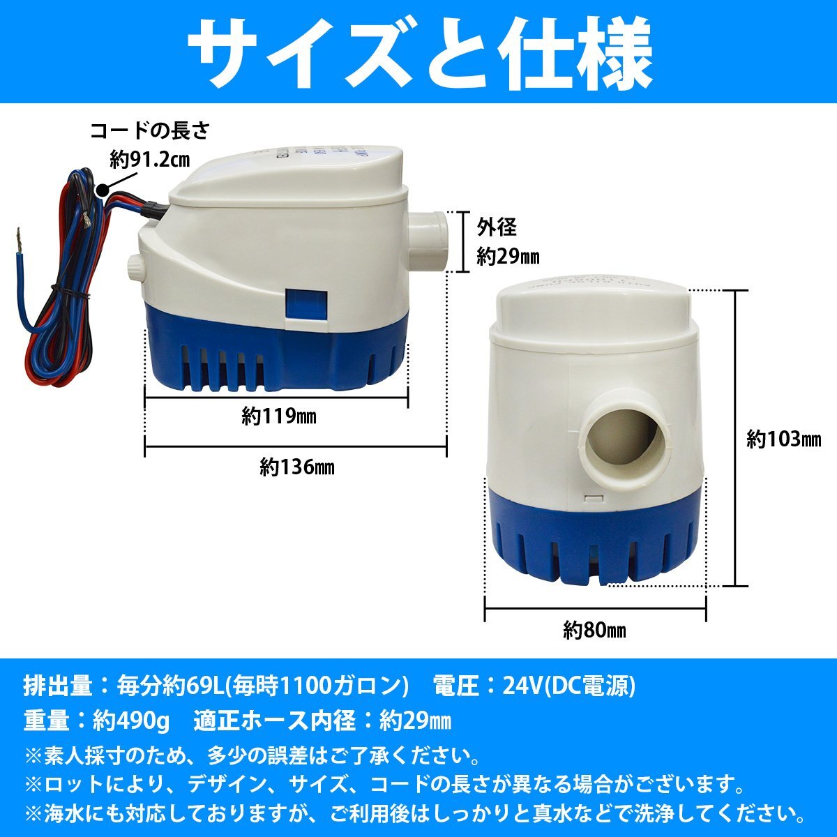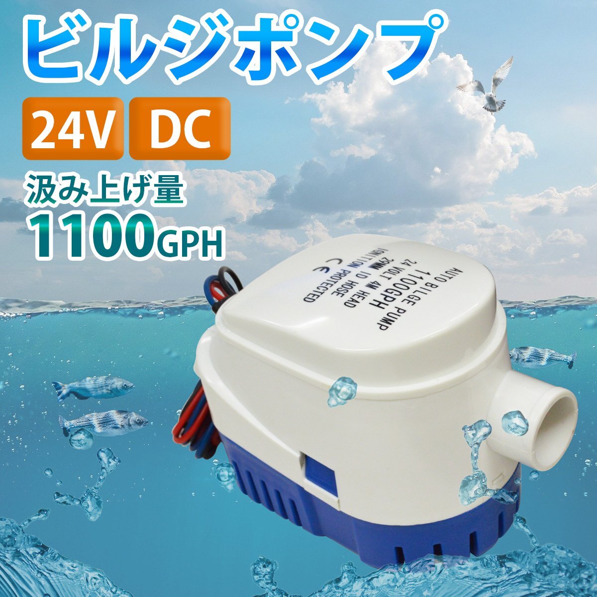 【送料無料】24V ビルジポンプ 1100GPH フロート スイッチ 一体型 毎分70L 水中 ポンプ 船 ボート ヨット 船舶 漁船 汲み上げ 自動排水